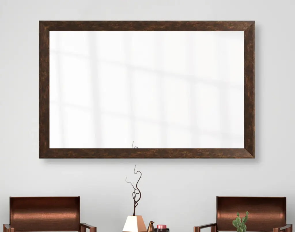 The clean lines of the LaRue make this a great contemporary frame choice for your mirror. A gently sloping surface adds a touch of dimension to this beautiful bronze framed mirror.Hangrail for installation will be applied on the width of the frame. All assembly hardware and instructions will be included. Additional hangrails are included if the opposite orientation is desired for installation. The dimensions displayed are the final outside dimensions of the frame, including the mirror. CATII safety backing applied on all mirrors. Approved for high-moisture areas such as bathrooms.
