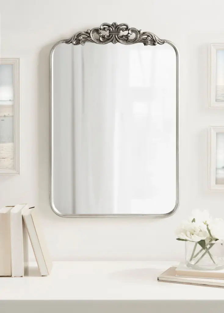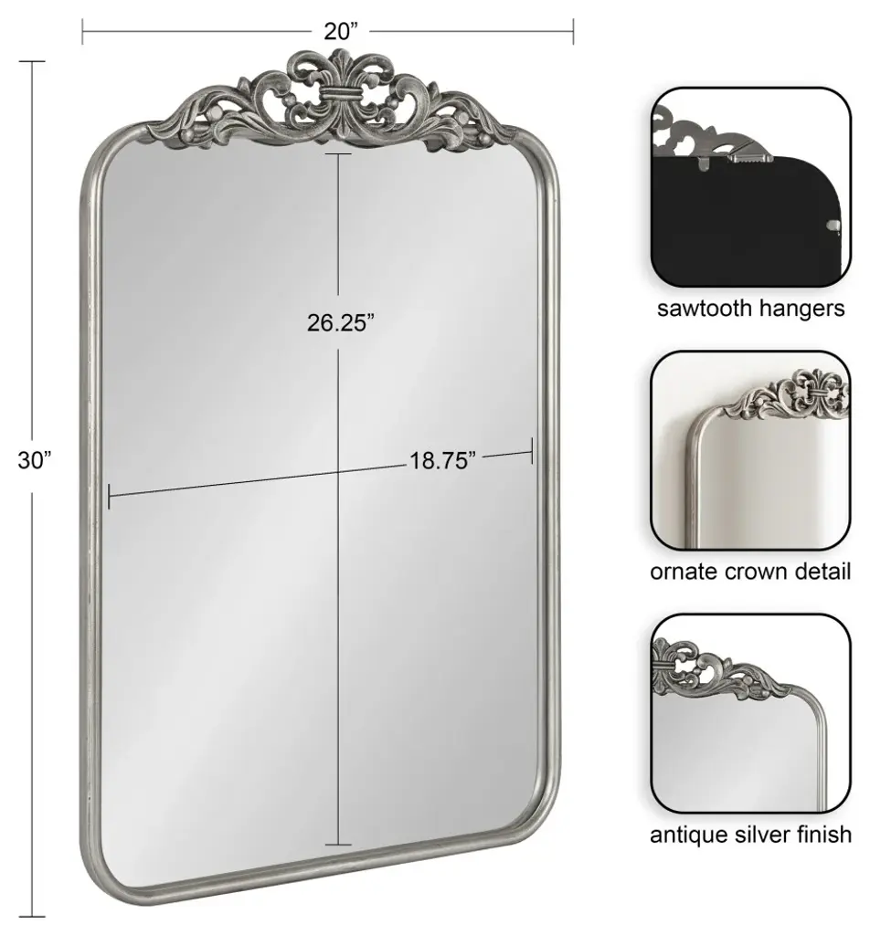Add a touch of vintage charm to your space with the Laubry vintage mirror. This mirror has gentle, stunning curvature paired with an ornate resin crown supplying your space with that antique feel. However, the rounded edges update the look, allowing it to fit well in transitional and modern spaces. Display this lovely mirror in your living room, bedroom, entryway, bathroom vanity, or dining room. Use this decadent wall mirror to bring dimension to your smaller spaces, opening up the area and illuminating the darker corners. This framed mirror is also lightweight and easy to hang, with metal sawtooth wall hangers discreetly and securely attached to the back. There''s no better way to bring an elegant, traditional design aesthetic to your home than with this beautiful mirror. It''ll dazzle your guests and create a permanent statement piece for your living space. As a versatile piece due to its size, the Laubry has the overall dimensions of 30 inches high by 20 inches with a slim frame profile width of just 0.5 inches.• Ornate Vintage Crown: The Laubry wall mirror boasts an intricate resin crown to set this apart from a standard rectangular mirror• Modern Rounded Frame: This unique mirror has soft, rounded curvature to give it a refined, modern look• Substantial Wall Mirror: This mirror measures 30 inches tall by 20 inches wide, providing a decadent ornamental accent piece• Versatile: Due to its size and shape, the Laubry serves as a lovely choice for a variety of spaces and settings• Easy to Hang: Installation only takes a matter of seconds thanks to metal sawtooth hangers securely attached to the back