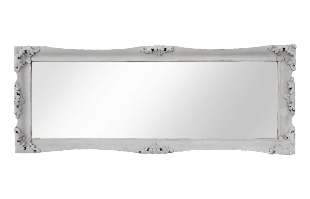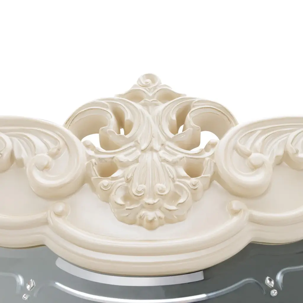 With an ornate mirror frame featuring a stunning crown medallion and crystal accents, the Lavelle Classic Pearl Sideboard Mirror is an elegant addition to any bedroom or living room, mixing fashion and functionality. Crown MedallionCrystal accentsClassic Pearl Finish