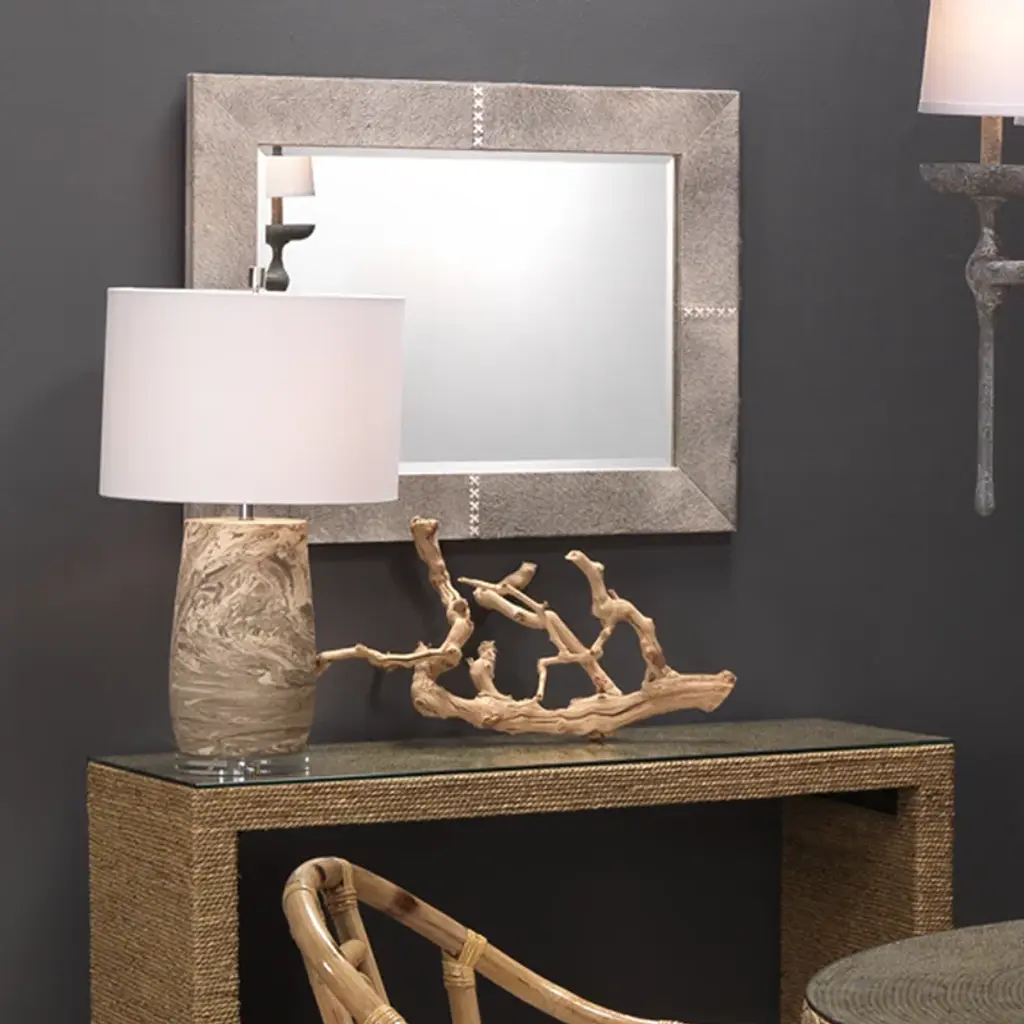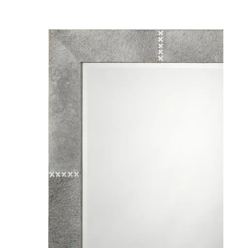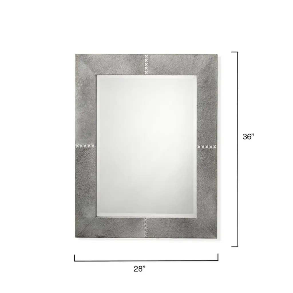 This beautiful mirror is hand-crafted from naturally selected hair on hide and whip stitched together with contrasting cross-stitches. Place it at the end of a hallway or over a console for a dramatic focal point that emphasizes natures unique variances in tone and markings of each hide.