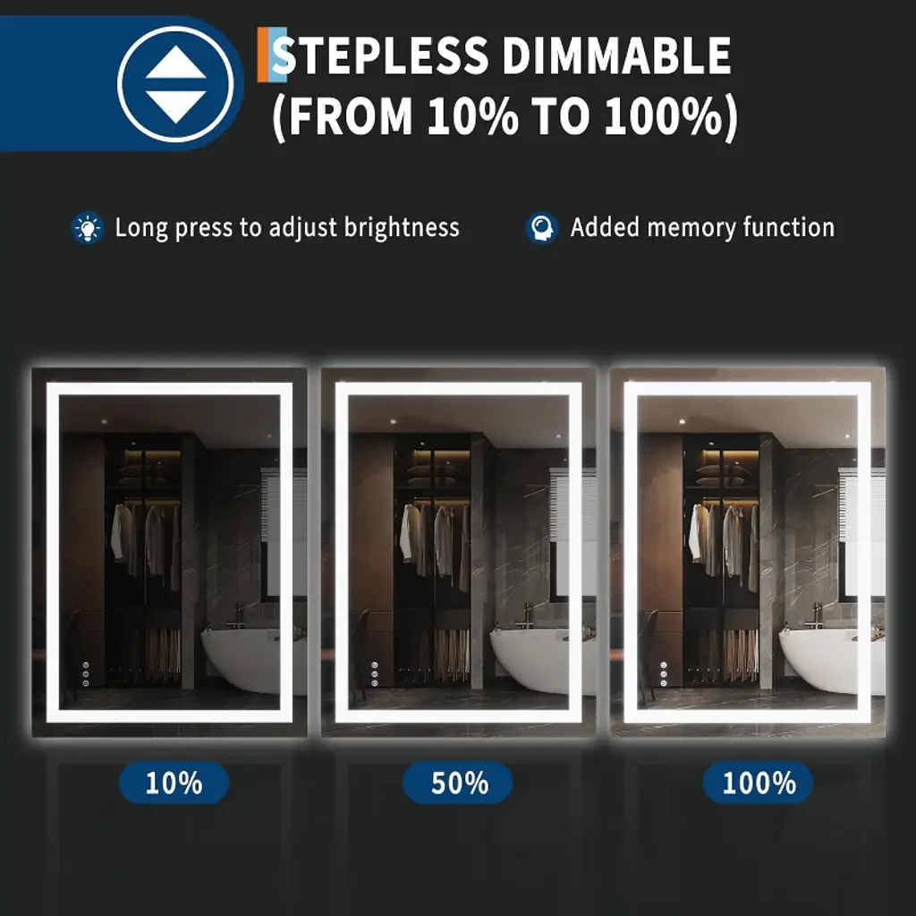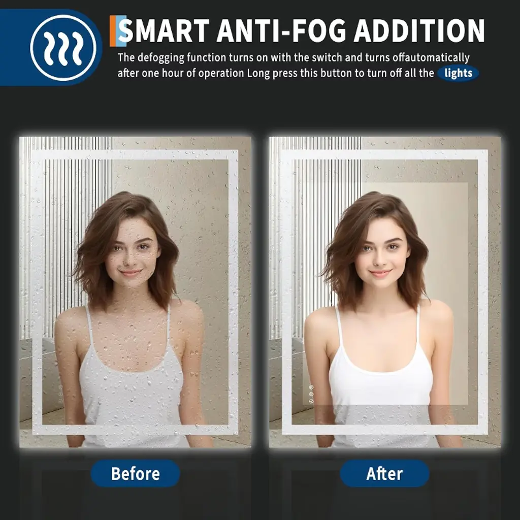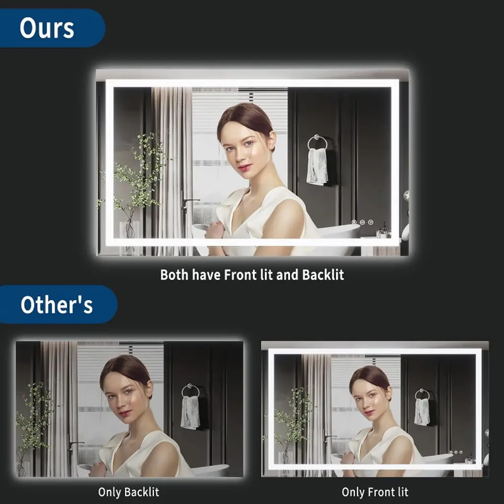 Led Bathroom Mirror, 32x24 Led Mirrors With Lights, With Front And Backlit, Anti-fog, Dimmable