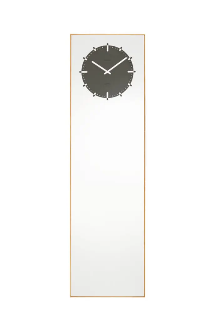 More than just a timepiece, this striking clock created by renowned Dutch designer Richard Hutten impresses at a glance. Made for LEFF Amsterdam, the clock maintains the studio’s “concept is king” mantra and offers a clever take on classic designs. The Inverse Mirror Clock fulfills a dual function as it combines a mirror and timepiece in one unit which is meant to be equal parts functional product and conceptual piece. Contemplating the passage of time becomes more meaningful as one is facing his or her own reflection. The face of the clock is transparent, allowing the natural oak surface to reveal its beautiful organic patterns. Two silver gray hands complete the design. A great conversation starter as well as a creative design that will add the perfect finishing touch to a modern interior, the LEFF Amsterdam Inverse Mirror Clock can be conveniently placed vertically or horizontally.