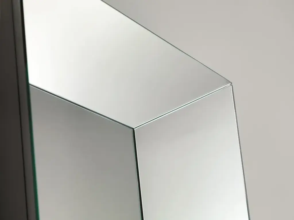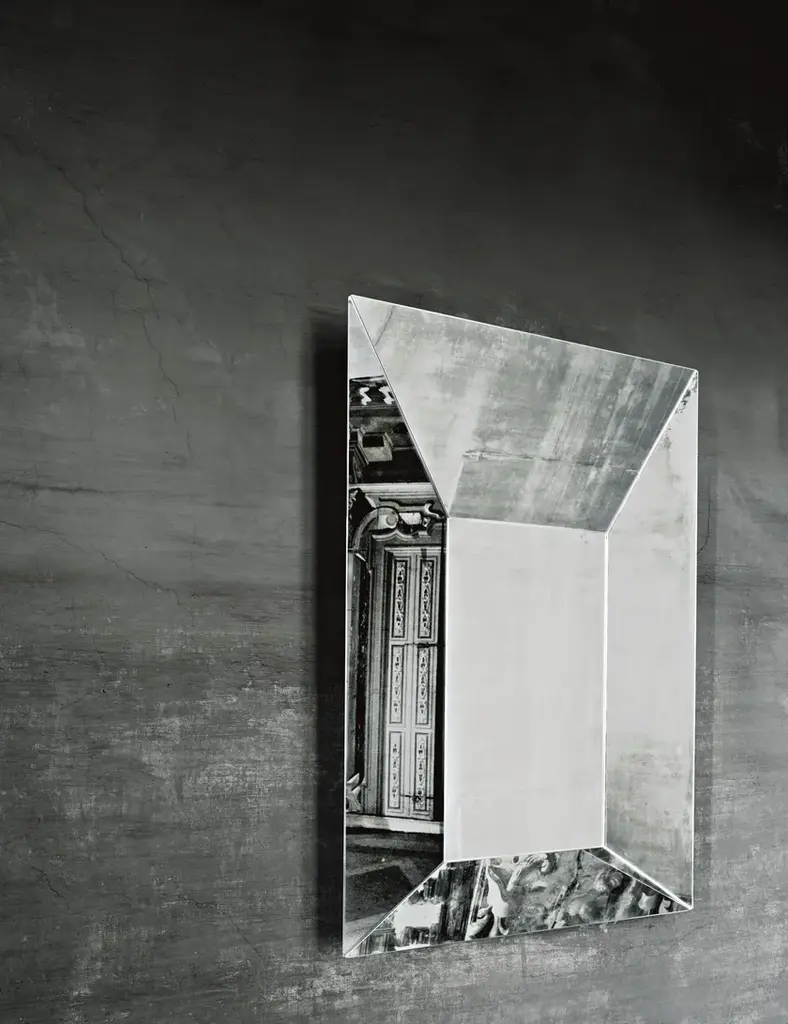 Leon Battista is a mirror shaped in an artificial perspective, creating a “sfondato” effect, available in three different sizes.The converging frame is in mirrored glass and each side has different widths and inclinations, generating in this way fragmented and unexpected reflections.Each mirror can be hung in any directionAttention, to avoid that the cleaning detergent seeps between the mirror slabs causing the oxidation of this one, it is recommended not to spray it directly on the mirror but to dampen the cloth used.