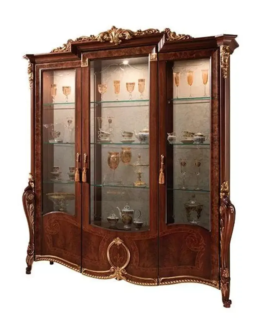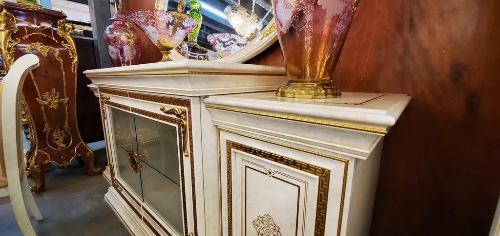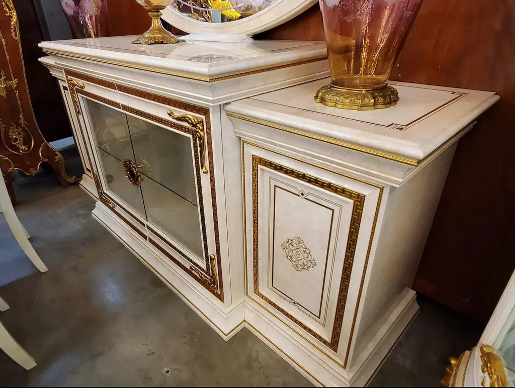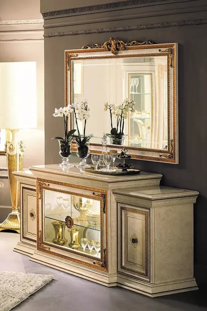 Sophisticated in the volume layout and rich in decoration at the front, the buffet furniture from the Leonardo collection finishes off the dining room area with a touch of flair and originality. The double gilt bordering motif makes the piece both striking and elegant; the jewelled-handles render it unique. This feature displays detailing of the highest quality, in all its composure.Shop All Arredoclassic Catalogs Furniture by Catalog