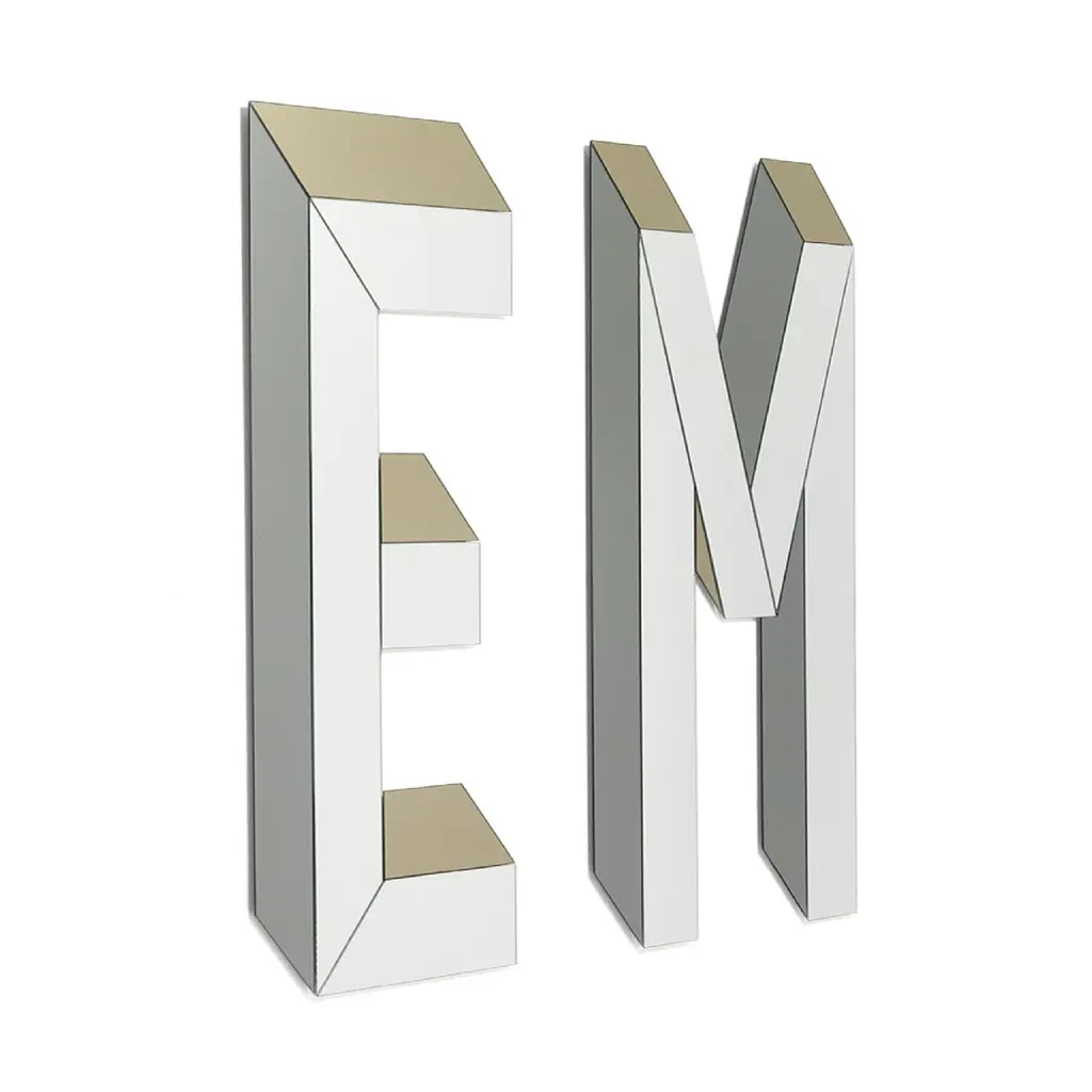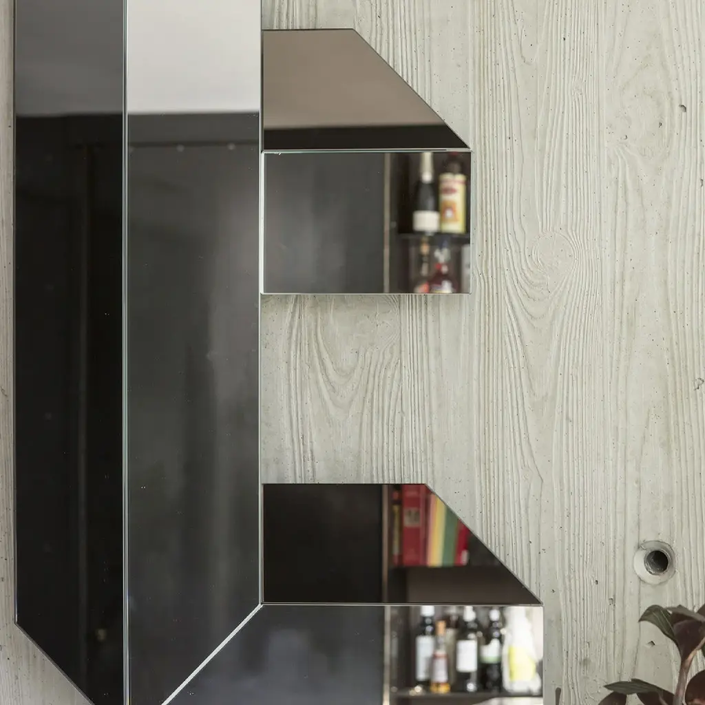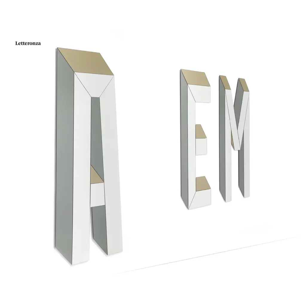 Embody sophistication and charm with the Letter Wall Mirror from Mogg Letteronza. This exquisite collection features vintage, classic, and modern accents in the form of letters, available in two heights. Crafted with 3 colored mirrors, each initial tells a unique story and adds a touch of irony to any room. Choose from smoked, bronze, or silver for a statement piece that truly stands out.