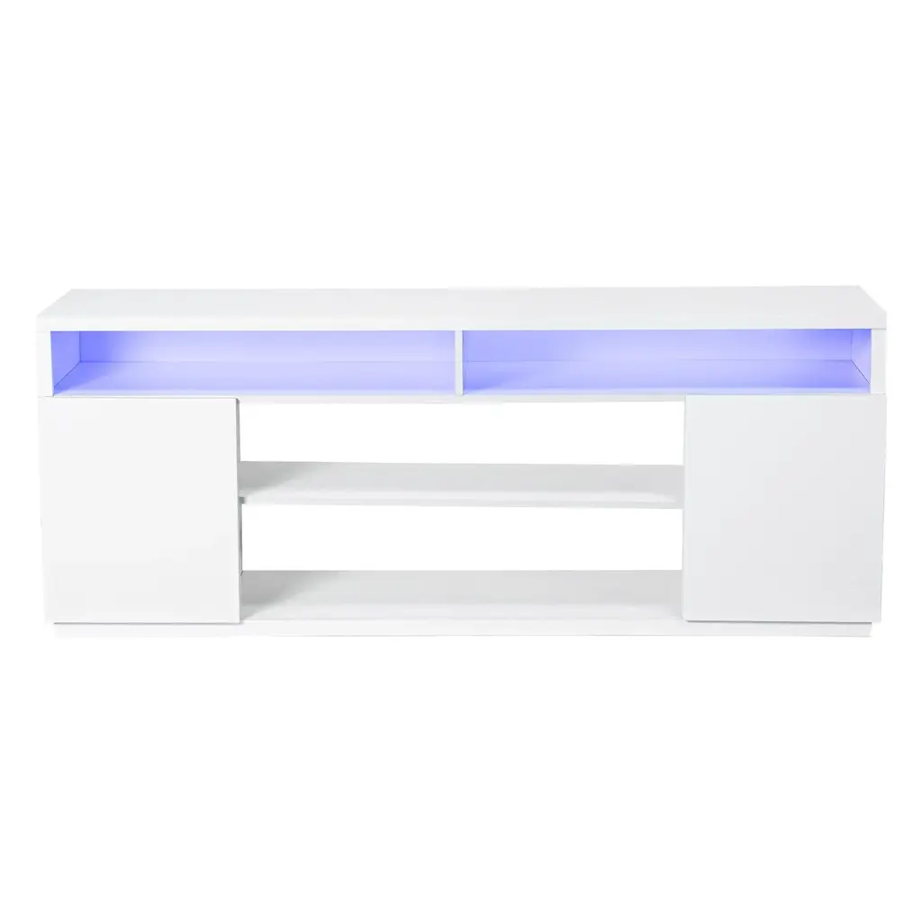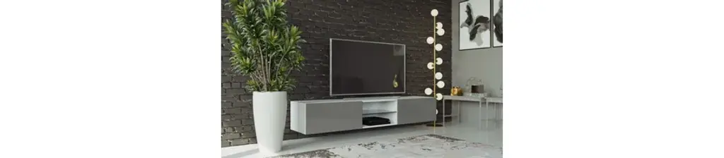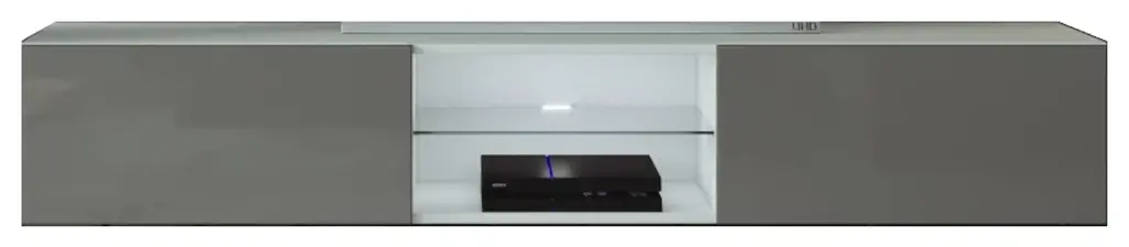 Ultra modern design of LIDO Glass TV Stand will guarantee stunning look to your living room. Crafted of laminated board and MDF in a gloss finish, this TV stand strikes a clean-lined rectangular silhouette. A pair of spacious side compartments offer storage space for spare remotes, DVDs etc.TV stand with 2 cabinets units and a glass shelfNeeds to be mounted to the wall, mounting hardware is not includedLED is included100% Made in Europe!Available in different colorsKORPS- CHIPBOARD LAMINATED FRONT- MDF GLOSS