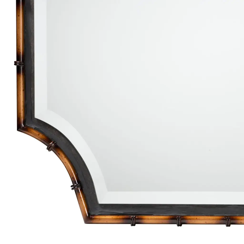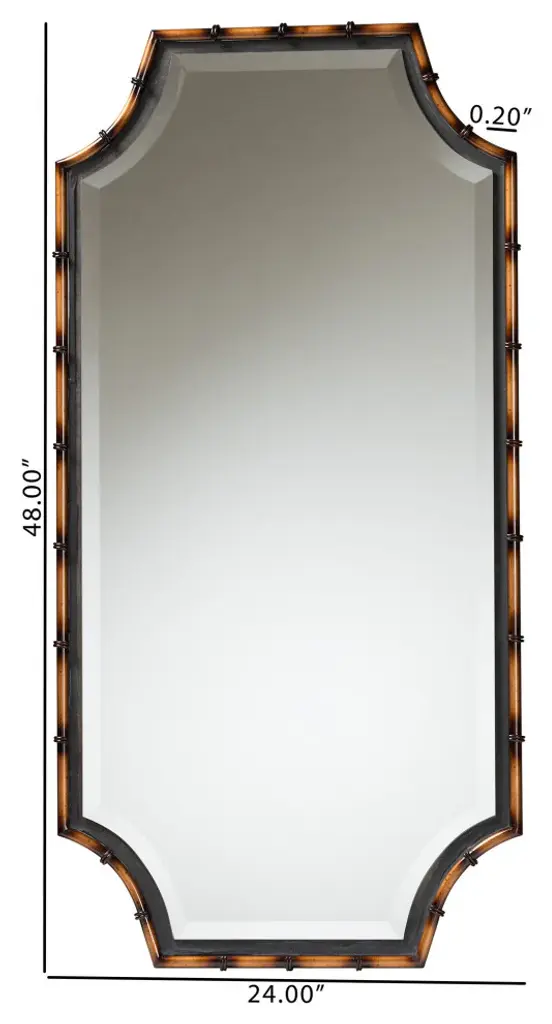Impart a classic elegance to your space with the rustic opulence of the Lieven accent wall mirror. Made in China, this glamorous piece consists of a solid metal frame fitted with a large central mirror. Scalloped corners create a geometrically pleasing silhouette, while ringed accents along the frame create a display reminiscent of bamboo. The Lieven will arrive fully assembled and is wall-mountable. An endowment of unassuming luxury, the Lieven brings a remarkable aura to any interior.Features:- Rustic glam and luxe mirror-Constructed from metal frame- Rectangular mirror- Bamboo-like embellishments- Scallopped corners- Vertical orientation- Fully assembled- Fully Assembled- Wipe Clean- Overall Dimensions: 24.00" W x 48.00" L; Thickness: 0.20" ; Mirrored Glass: 20.90" W x 0.20" D x 44.90" H;