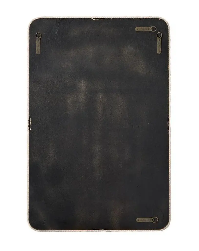We add a little French chic to a classically nautical look to create this jaunty wall mirror. The frame is intricately braided cotton-jute rope, with rows of black and off-white that contrast stylishly. The finished back has hanging loops that allow it to be displayed horizontally or vertically to suit your interior Hand-wrapped of 100% Natural Cotton Jute Non beveled glass mirror Versatility of hanging vertical or horizontal Contrasting Black and Off-White Jute Rope Wall Mounted The inherent variations in tone and texture of Cotton and Jute are preserved, to create pieces rich in detail and natural beauty. These unique imperfections give our products character and individuality, with each piece having its own personality. Mirror Surface: 30.90"H x 18.89"W D-Loop Hanging Mechanism Frame: 2.55" MDF Backing Care Instructions: Wipe frame with a soft, dry cloth. Wipe glass with standard glass cleaner. DO NOT use cleaners or abrasives on mirror frame.
