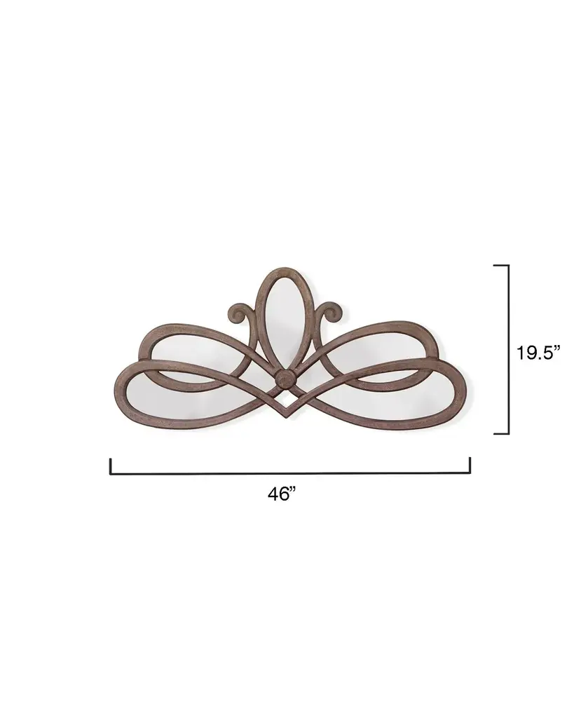 This mirror hangs horizontally only. Sawtooth hook included. This large scale mirror is the perfect blend of elegant and rustic with its scroll design and distressed wood. Expertly crafted of wood and hand-distressed in Grey Non beveled glass mirror Mirror can hang horizontally Claw-Tooth Hanging Mechanism Frame: 1"W MDF Backing