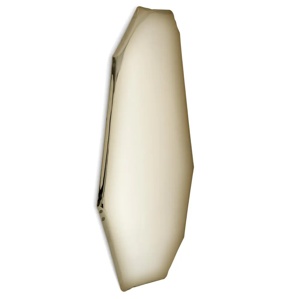Light Gold Tafla C1 Sculptural wall mirror by ZietaDimensions: D 6 x W 99 x H 225 cm Material: Stainless steel. Finish: Light gold. Available in finishes: Stainless Steel, Deep Space Blue, Emerald, Sapphire, Sapphire/Emerald, Dark Matter, Red Rubin, light gold, classic gold, or rose gold. Also available in different sizes. Steel mirror in the form of a fragmented glass or rock – TAFLA C mirror by Zieta Studio is a modern uncompromising object. It is a wall sculpture that can be arranged in personalized groups to create artistic installations in private and public spaces.In the Transitions Collection, these unusual mirrors in various sizes and shapes are available in two colors: Red Rubin and Dark Matter. TAFLA C Red Rubin mirror resembles a piece of ruby, while the TAFLA C Dark Matter is like a gate to another dimension. This collection of mirrors will be a perfect decoration for a home with style or for a public space that aims to stand out in the crowd.The geometric TAFLA C comes in seven different sizes – it can be arranged in an artistic personalized composition or exposed on a wall as a single sculpture-like mirror.About Zieta: Zietas main goal is to deliver uniqueness and customization in design and construction while keeping the production, transport, and warehousing innovatively efficient.This is how they imagine the future world: Light, durable structures of customized applications produced on demand out of one-of-a-kind parts, yet efficiently.They use a computer-controlled production process. Customized pattern, customized form, customized function, one-of-a-kind product, and outstanding precision are what they deliver.You will find all of this philosophy reflected in the products. The research, they discover new possibilities, they play with forms and they deliver a beautiful, innovative, surprising outcome to people who love the design and who care about design development.They believe their work is a valuable contribution to the world of design not only by the unique beauty of the forms but most of all by opening ultra-innovative opportunities of forming and new paths for the world of the future. __