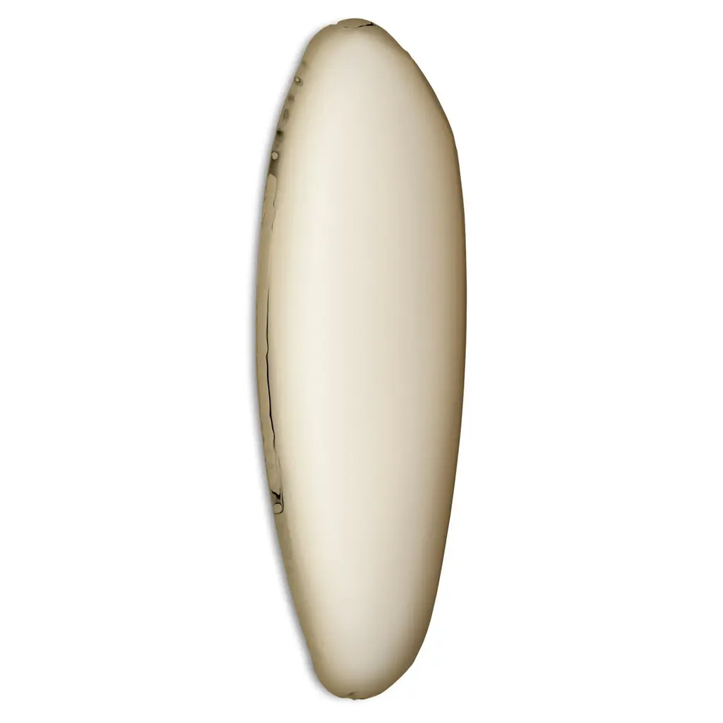 Light Gold Tafla O1 wall mirror by ZietaDimensions: D 6 x W 100 x H 225 cm Material: Stainless steel.Finish: Light gold.Available finishes: Stainless steel, white matt, sapphire/emerald, sapphire, emerald, deep space blue, dark matter, red Rubin, light gold, classic gold, or rose gold. Also available in other sizes.TAFLA O mirror is a bionic sculptural object made by Zieta Studio using FiDU technology. The irregular shape of the mirror is an effect of inflating two-dimensional metal sheets with pressurized air – this way some slight distortions appear on the edges giving each object a unique character.The TAFLA O steel mirrors from the Transitions Collection come in two colors: Rubin Red and Dark Matter. These well-defined strong hues were created with extravagant interiors and their users in mind. Such mirrors covered with semi-transparent lacquer will be a stunning addition to stylish private living rooms, hotel lobbies, and restaurants.TAFLA O comes in seven different sizes – it can be arranged in an artistic personalized composition or exposed on a wall as a single sculpture-like mirror.About Zieta: Zietas main goal is to deliver uniqueness and customization in design and construction while keeping the production, transport, and warehousing innovatively efficient.This is how they imagine the future world: Light, durable structures of customized applications produced on demand out of one-of-a-kind parts, yet efficiently.They use a computer-controlled production process. Customized pattern, customized form, customized function, one-of-a-kind product, and outstanding precision are what they deliver.You will find all of this philosophy reflected in the products. They research, they discover new possibilities, they play with forms and they deliver a beautiful, innovative, surprising outcome to people who love the design and who care about design development.They believe their work is a valuable contribution to the world of design not only by the unique beauty of the forms but most of all by opening ultra-innovative opportunities of forming and new paths for the world of the future.