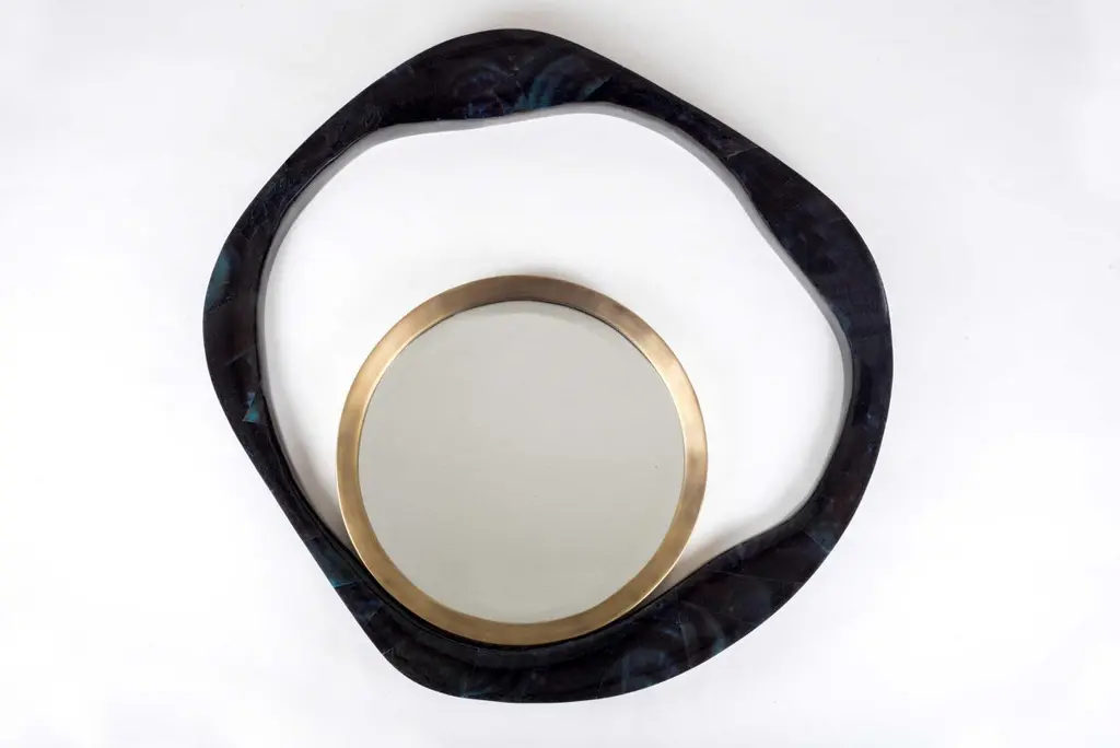 The Paris based label has distinguished themselves since their launch, with their iconic use of shagreen mixed with brass and other exotic materials. All furniture is handcrafted by skilled artisans, ultimately making each piece unique, designed in Paris and produced in the Philippines.The lily mirror by R & Y Augousti in shagreen and bronze-patina brass, is an iconic piece of theirs and is an extremely versatile mirror. Due to the fixtures at the back this piece can be hung in three different ways creating a different expression each time with it's amorphous and poetic shape. Available other finishes and a large size, images at end of slide. Custom color and sizing available on request.The finish of the shagreen is authentic as it is hand-dyed and the designer calls the finish look, "antique black shagreen." This finish has green color notes in it.The dimensions of this piece are 77 x 43 x 7.6 cm / 30.5" x 28.25" x 3"All R & Y Augousti pieces are handmade by artisans, ultimately making each piece unique.Wipe clean with soft dry cloth.Acclaimed design duo Ria & Yiouri Augousti have established themselves since the 1990s as pioneers of modern-vintage style through their luxurious Art Deco inspired collections.The Paris based label has distinguished themselves since their launch, with their iconic use of shagreen mixed with brass and other exotic materials. All furniture is handcrafted by skilled artisans, ultimately making each piece unique. All shagreen-covered items should be kept out of direct sunlight, color variants may occur on the stingray and other exotic finishes, but this showcases the Parisian label's commitment to creating authentic luxurious products using natural components.