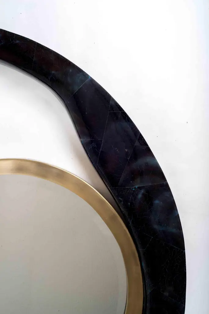 Lily Mirror Medium In Shagreen And Bronze-Patina Brass By R & Y Augousti