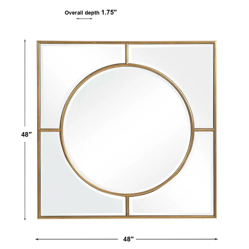 Showcasing a refined traditional style, this square mirror features a classic brushed gold finish with curved beveled mirrors. Group multiple pieces together to create an eye-catching wall display. May be hung horizontal or vertical.
