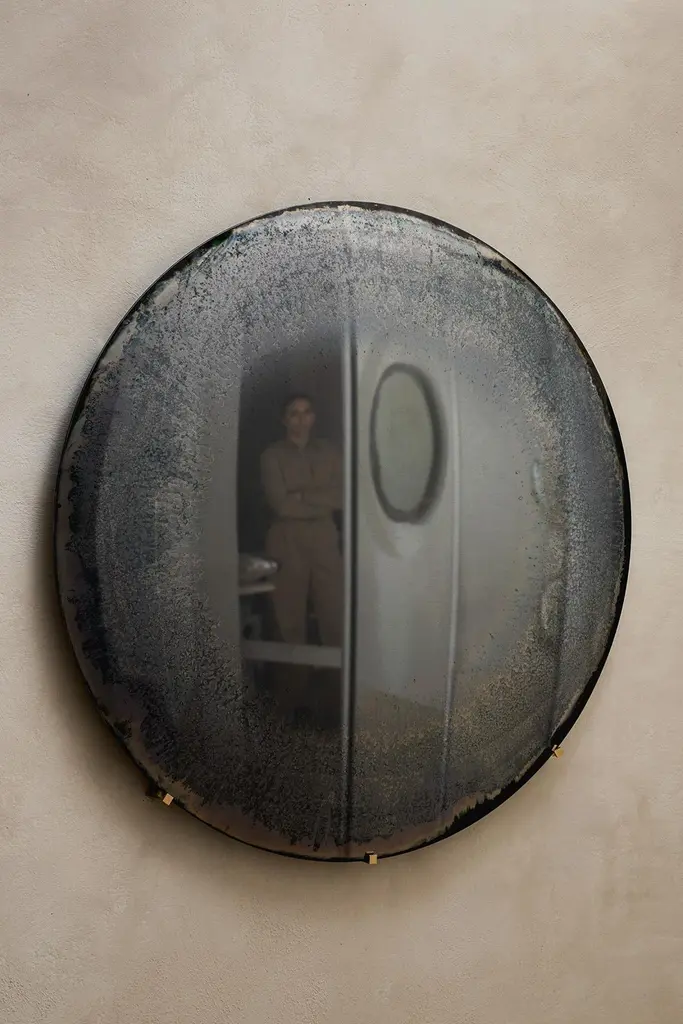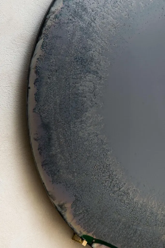 Limited Edition Gray Mist Sculptural Silver and Glass Mirror by HomaDimensions: D 78 x H 5 cmMaterials: Convex Oxidized Mirror.HOMA is a contemporary design atelier based in Istanbul. The atelier’s trademark processes are handblown glass, glass fusing and mirroring, created through the use of multidisciplinary techniques and materials. Over time, with meticulous research and experimentation HOMA has acquired unique expertise in mirrors, lighting and home interior objects thus elevating things of function to the status of art. Handcraft HOMA has discovered one of the last remaining masters of handcrafted mirroring in the Eastern Mediterranean. The atelier is original in its simultaneous use of different techniques to create organic and flowing mirror shapes. Each piece celebrates reflection, translucency, movement, light, time, multiple layering and aesthetic, spontaneity…Object HOMA’s pieces are an exploration of organic, abstract, as well as unexpected flowing lines and shapes. Our design service offer is presented in a catalogue of over 50 designs in fluid and geometric shapes achieved through multidisciplinary techniques.Materiality Through the use of mixed textures and the layering of mirror elements unexpected effects are created on glass, which play with one’s visual perception as well as the surrounding space. Glass, stone, marble, messing mirror techniques, bronze, wood and clay are just some of the Earth’s materials that find their way into HOMA’S offerings. HOMA offers a vast materials library.Architecture Formally trained in interior architecture, HOMA founder, Tuğba Koç has transformed her knowledge and experience into layered aesthetic design objects. Now, with a team of architects and artisans, Tuğba applies her hands in a workshop environment on interior and exterior objects to enrich earth-derived, breathing, living materials. HOMA’s interior objects are informed by art and driven by the philosophy that nothing artificial should be allowed to interfere with the energy of one’s living environment.