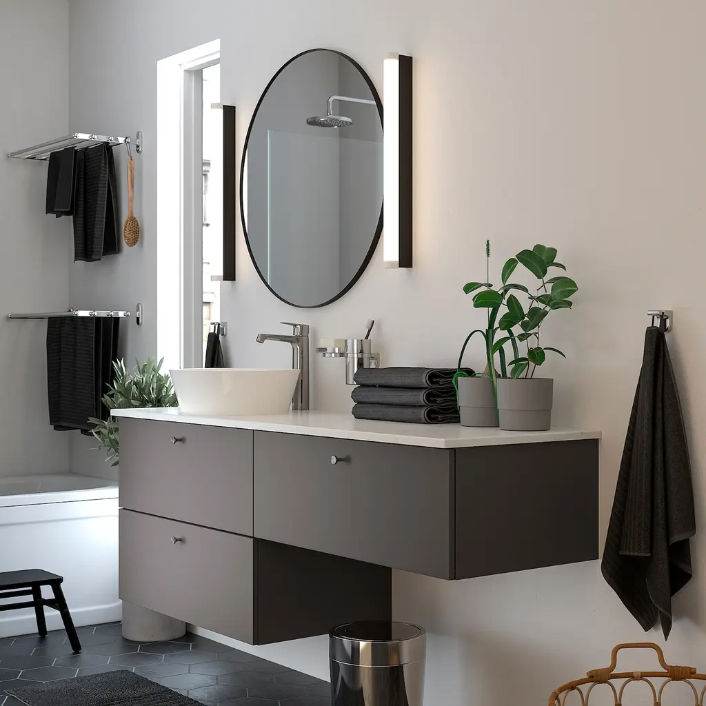 LINDBYN Mirror - black 31 1/2 ". Fits anywhere in the home and is also tested and approved for bathrooms. A mirror on the wall helps add depth to a room and makes it more dynamic. Provided with safety film - reduces damage if glass is broken.