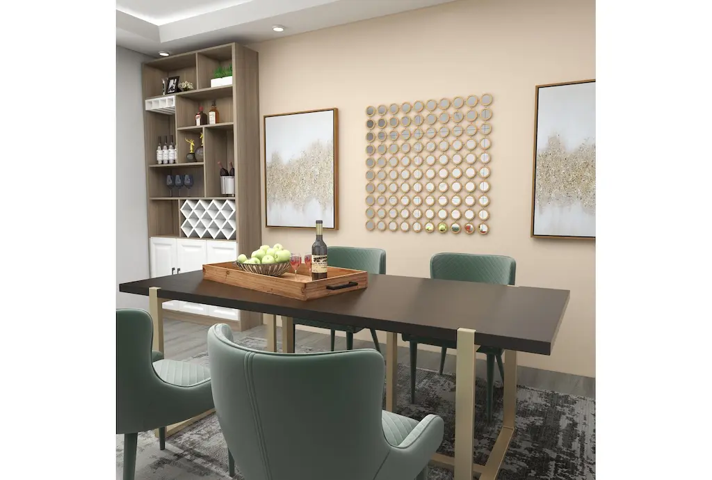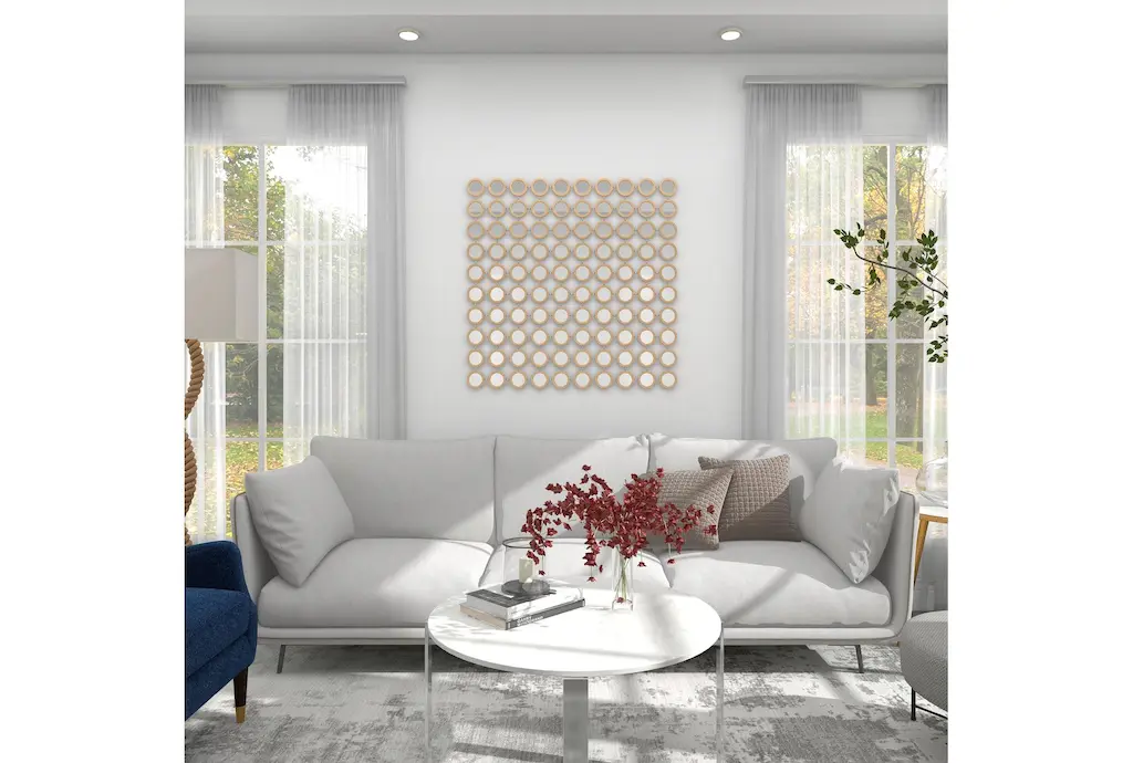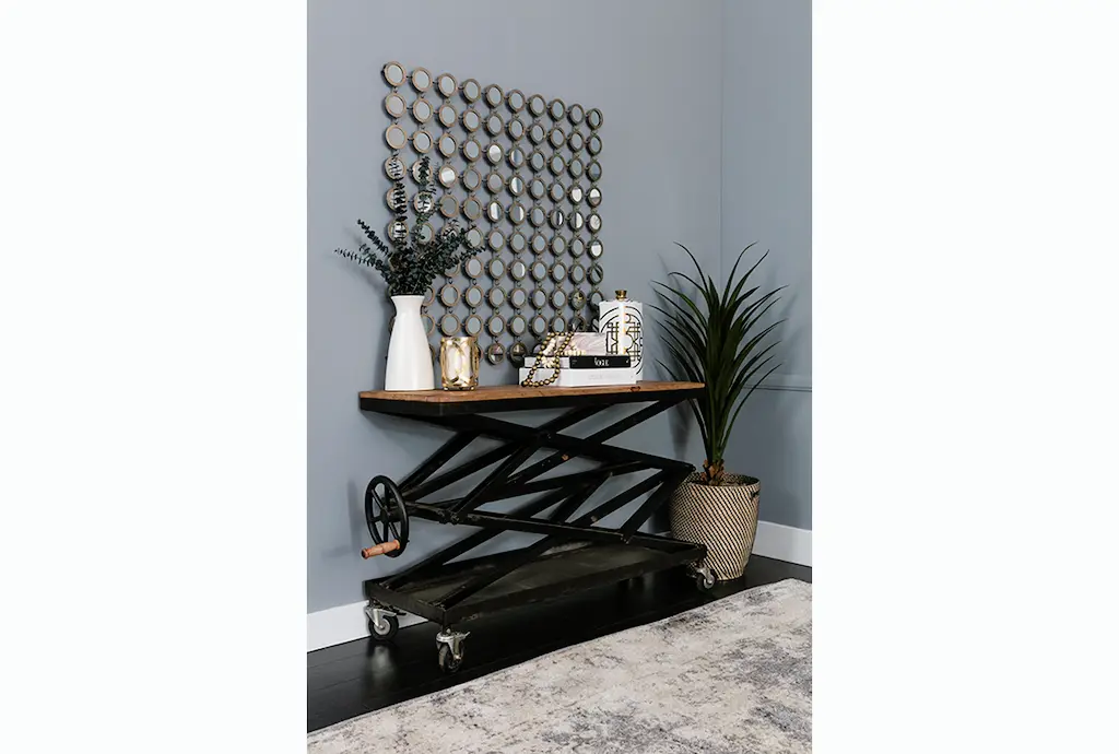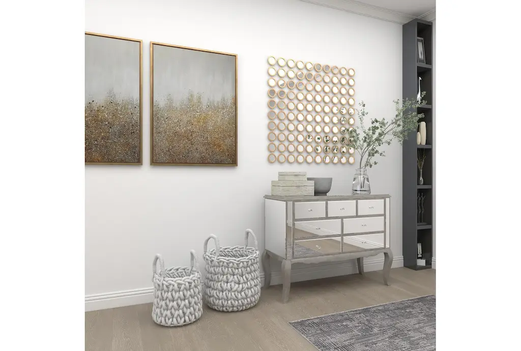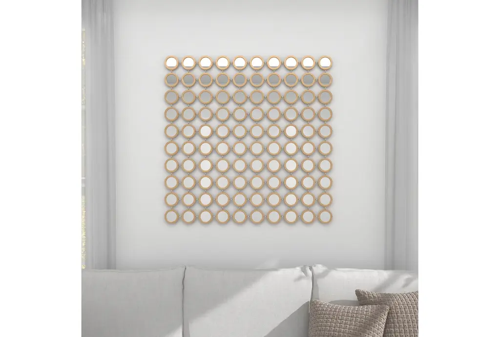 Apart from decorating your home, the purpose of this wall mirror is to bounce back outdoor light to a small room to make it look bigger. Pair this decorative wall mirror with house plants or other wall decor accent pieces to blend everything together perfectly. Make this chic and glamorous wall mirror a focal point in your home when hung on top of a console table in your entryway. This item ships in 1 carton. Can be hung vertically using the keyholes on the back; nails and screws not included. Suitable for indoor use only. This item ships fully assembled in one piece. This is a single gold colored entryway mirror. Glam style.