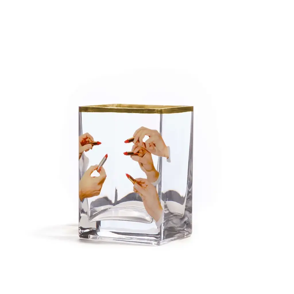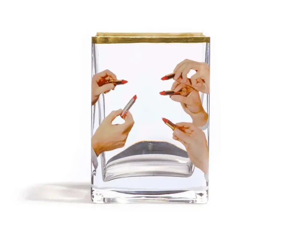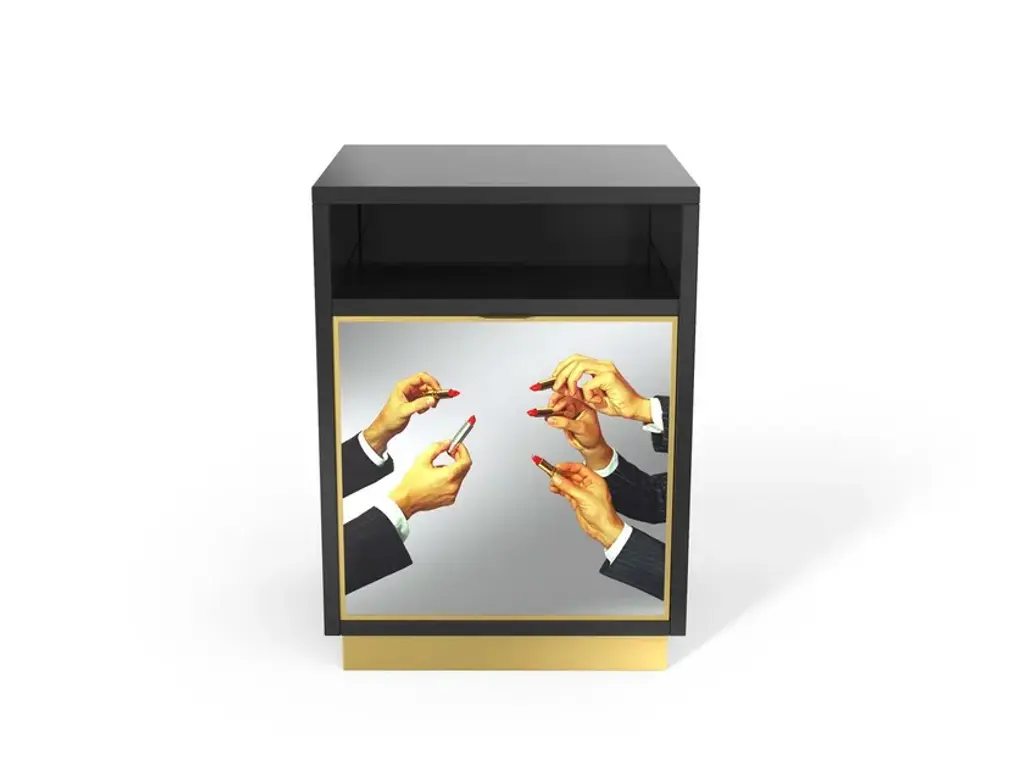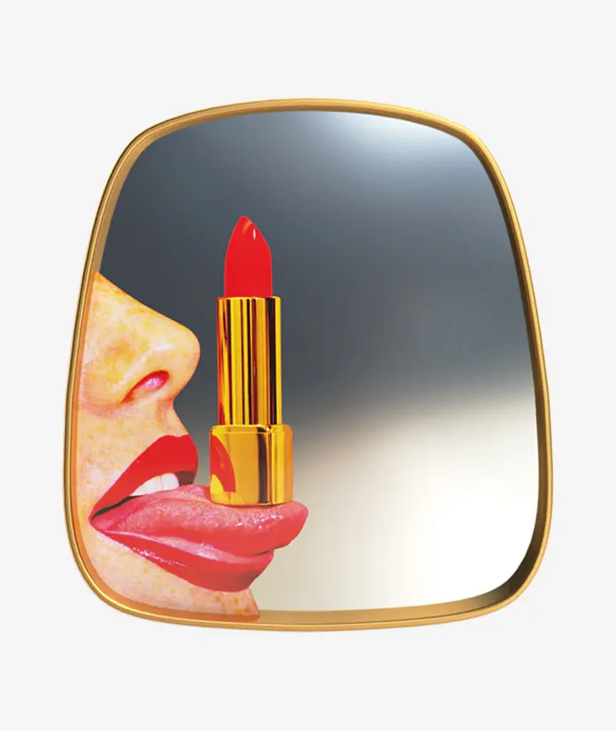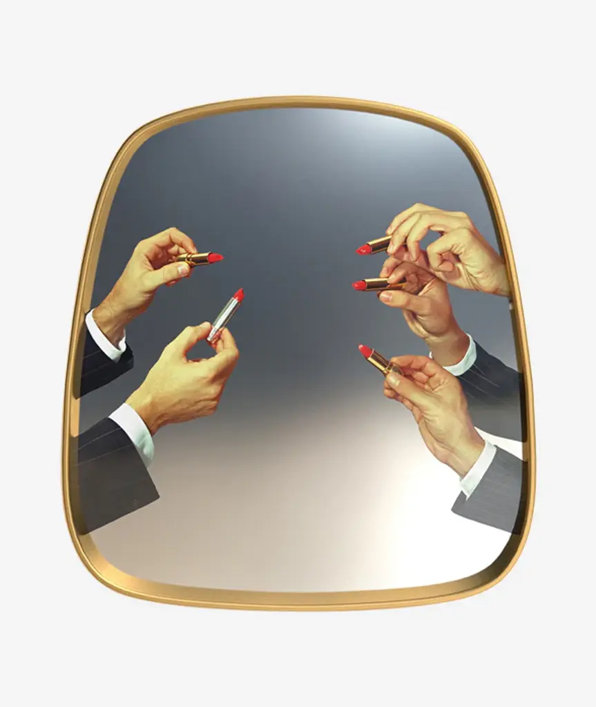 Lipsticks is a wall mirror with frame.It is part of a series of mirrors decorated with some of the most irreverent images signed TOILETPAPER. Available in 2 sizes, the 6 graphics will give that flirty touch to the wall, making you the protagonist of their extraordinary and crazy world.Material: Glass, MDF covered by hand with brass foilWeight: 8.2 kg