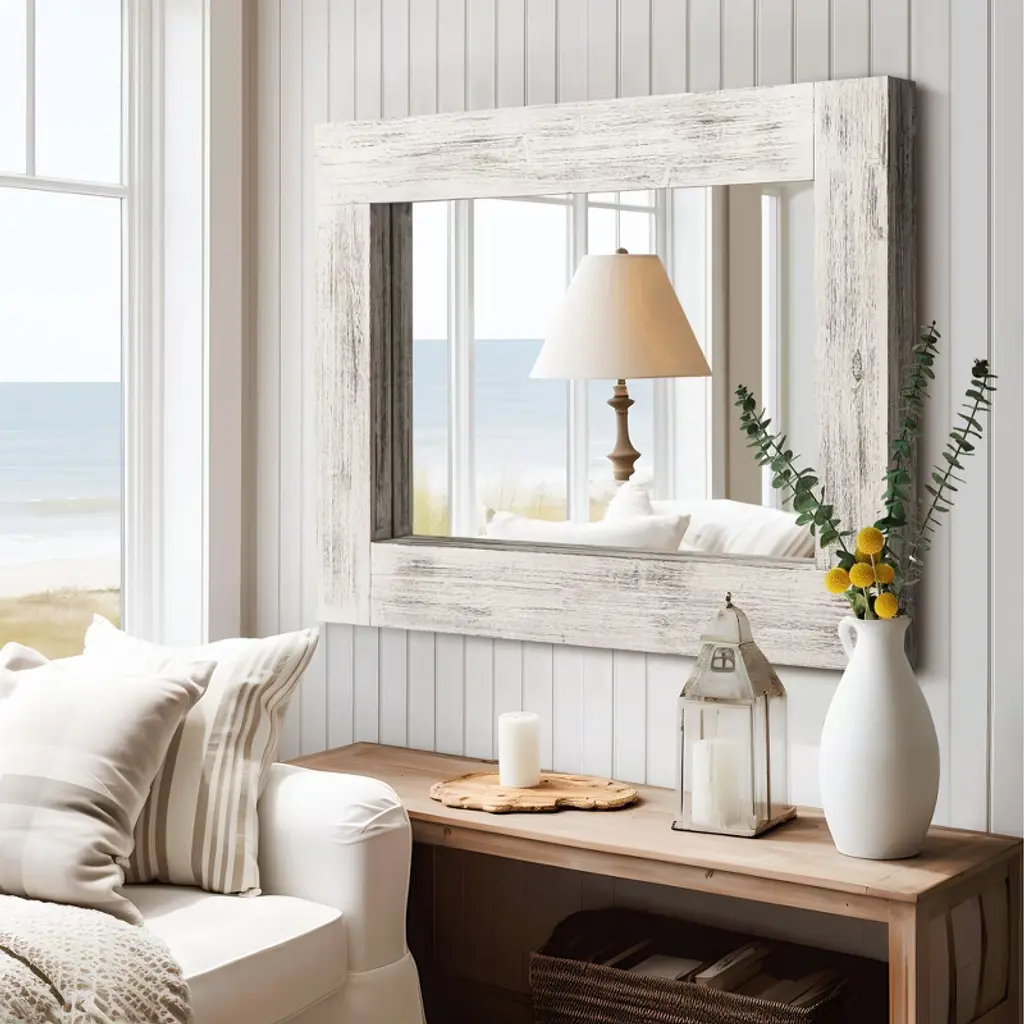 Lirago Distressed Wood Wall Mirrors Farmhouse Mirror (Set Of 2) 36*24 Weathered White