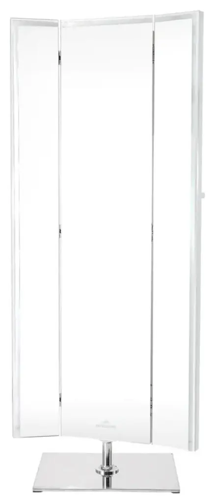 Lite Mirror on Stationery Stands for easy storage. They are made from a highly reflective optical film. They will not shatter or break into dangerous shards when impacted. The reflected image is a super clear high definition reflection Amazingly brighter than plate glass. They are perfect everywhere you can hang a mirror. Safe and lightweight to place everywhere