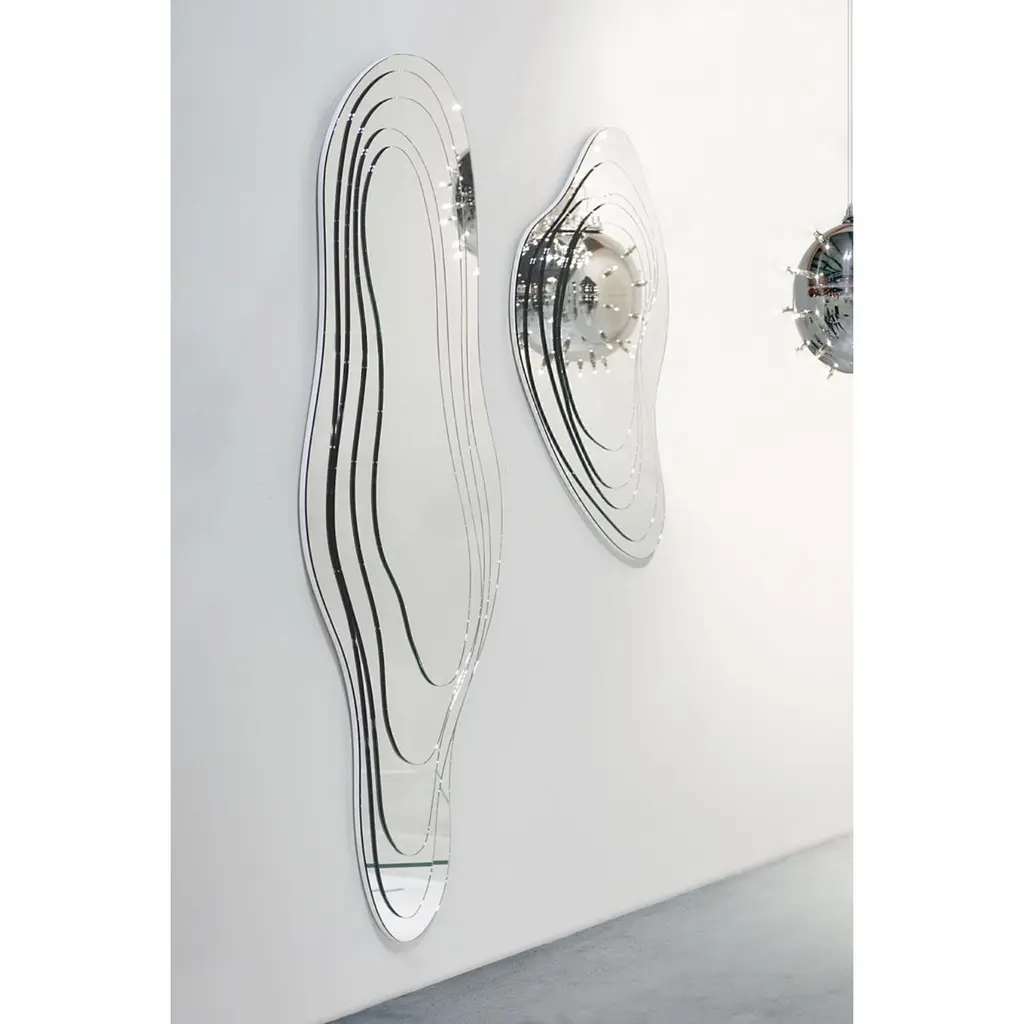 Livelli 1750 Wall Mirror with White Colored MDF by Barberini & GunnellLimited Edition of 30 + 2 AP + 1 p.Dimensions: W 100 x H 175 cm. Materials: Mirror and MDF.Limited Edition, signed and numbered by the artists, comes with a Certificate of Authenticity. Please contact us. Please contact us.Barberini & Gunnell, founded in 2009 in Ancona, Italy by architects Francesco Barberini and Nina A. Gunnell, is the result of a philosophy, thinking of design and architecture as a work of art. The architectural and interior design activity carried out by ‘The Studio’ complements the creations of ‘The Atelier’, which are the result of an artistic playground and highly skilled craftsmanship, a place where artworks and sculptures come to life.The Studio Barberini & Gunnell designs high-end residential and retail spaces that are out of the ordinary and beyond fashion. Barberini & Gunnell creates refined, timeless, and harmonious environments by inserting collectible design, “talking pieces” that create unique and bespoke homes according to the client’s eclectic and aesthetic desires.The Atelier Barberini & Gunnell creates artworks and collectible designs, one-off pieces, and limited editions for a small niche of high-end projects; bespoke solutions for luxury and ultra-luxury projects all over the world.The choice of the most precious materials, the maniacal cure for detail is the basis of our modus operandi aiming to create timeless pieces, using marine grade stainless steel, brass, cast bronze, precious wood essences, marbles, onyxes, semi-precious gemstones, crystal glass, together with the most sophisticated technologies and quality craftsmanship.This allows us to work for clients like Four Seasons Hotels, The Ritz Carlton, Regent Seven Seas Cruises, Louis Vuitton, Cartier, Dior, Paramount Pictures, Peter Marino Architects, Sotheby’s, Bonhams, Foundation of Maestro Andrea Bocelli, Ridley Scott (House of Gucci) besides our private collectors and clients.Values such as sustainability, the use of natural materials, the rediscovery of eco-sustainable craftsmanship, and the protection of refined and ancient techniques that are increasingly being lost are the basis of the design.Barberini & Gunnell’s signature works are exhibited at international art fairs such as Art Basel Design//Miami, Art Miami, Art Basel Switzerland, PAD London, PAD Genève, PAD Paris, PAD Monaco, Salon Art+Design New York…