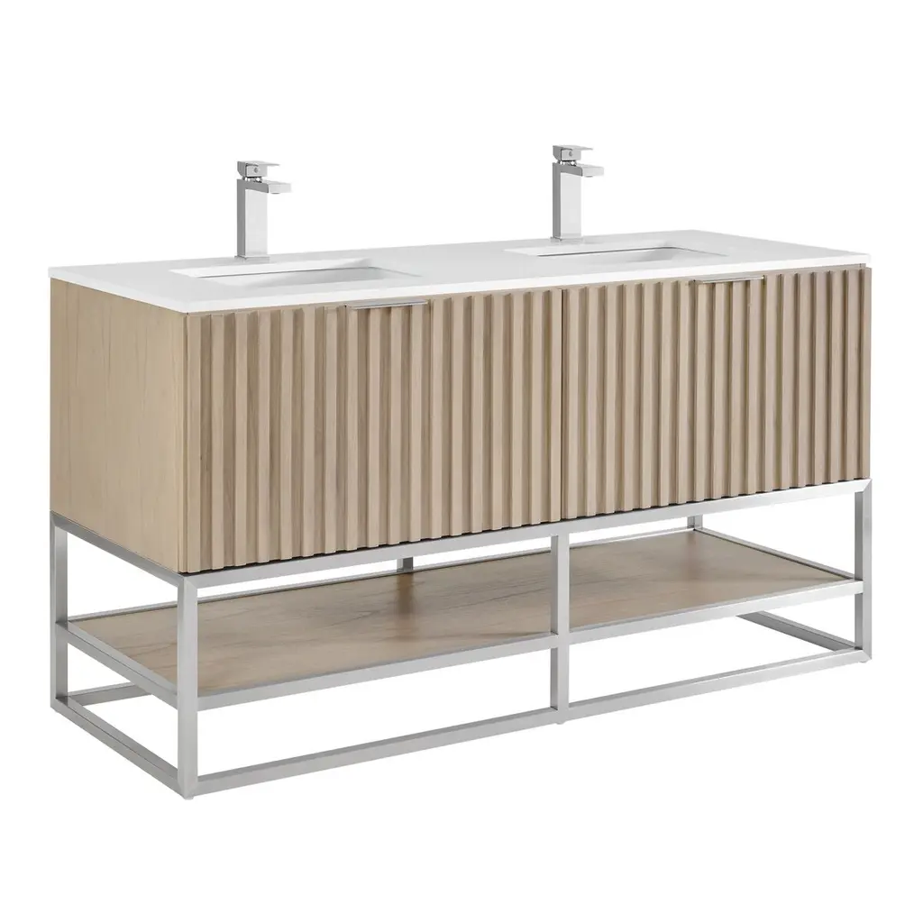 Livia 60" Wall-Mounted Double Bathroom Vanity With White Artificial Drop-In Sink Without Mirror