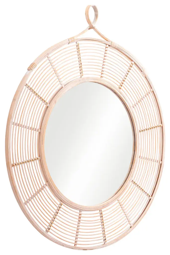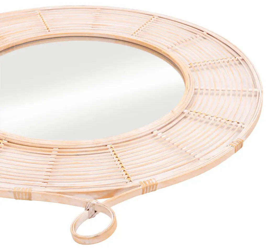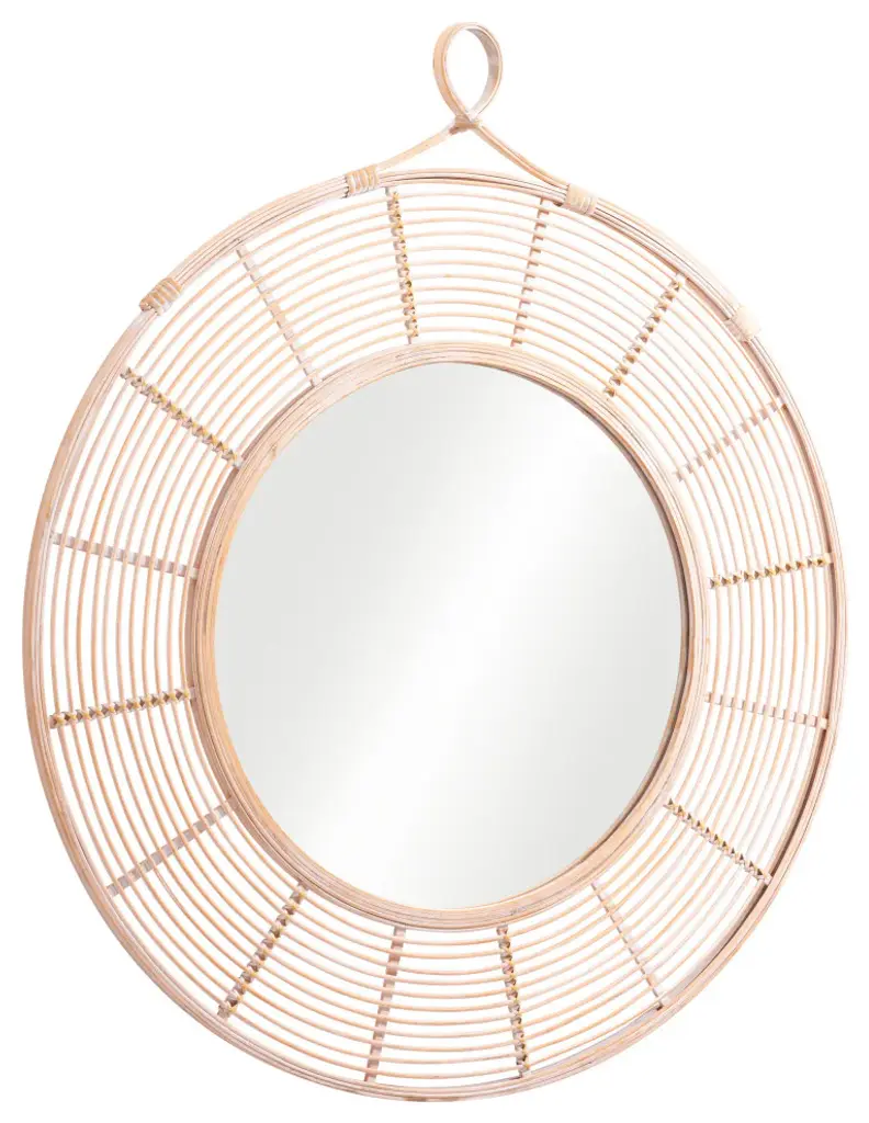 The Lobo Mirror has a steel frame wrapped with a polyurethane rattan weave. This mirror combines modern deco and boho Chic glam that can make any room pop.Assembly required : NoProduct Feature - Assembly : No Assembly RequiredColor : NaturalProduct Materials Only (Combined) : Rattan, MDF, GlassProduct Finishes + Materials (Combined) : Painted Rattan, MDF, Mirror GlassProduct 1 Dimensions: 31.5" W x 1.4" D x 36.6" H; Product Materials: Glass, Rattan, MDF; Product Finish: Painted, Vacuum Plated; Commercial Material: Rattan; Care Information: Glass cleaner and soft towel; Product Stackable: Not Stackable; Product Assembly: No Assembly Required; Product Use: Hangs Vertical only; Product Includes: One O-Ring hanger & includes solid fir wood frameProduct 1 Dimensions: 31.5" W x 1.4" D x 36.6" HGlass cleaner and soft towel