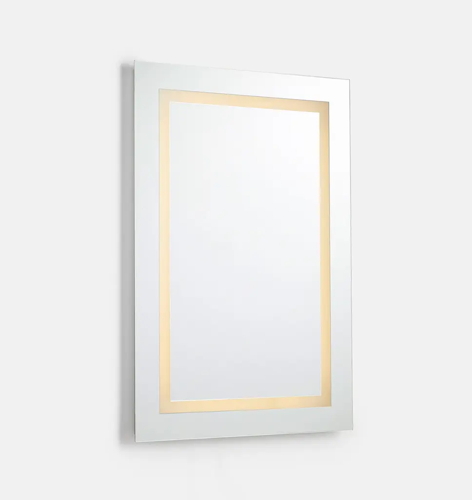 Our Logan LED Mirror features a frameless design with a LED light border set to 2700k for a warm, natural backlit glow. With an easy-to-use touch sensor, Logan ties together high performance with a classic sense of style to elevate any bathroom vanity. Details You'll Appreciate Can be hung vertically or horizontally Forward facing LED light emits 2700K natural warm color Touch sensor switch Available in two sizes Product Specifications Glass, Stainless steel Hardwired or plug-In UL and damp-rated Defogger pad Imported