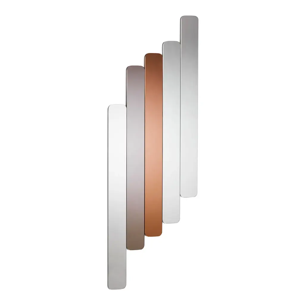 The name 'Logs' stems from the designer's source of inspiration, found in the calmness of the Nordic birch forests. Embodying the repetition of numerous trees, this aesthetically versatile piece echoes the identical shape of the mirrors. Simultaneously static yet softly organic. The individual mirrors can be placed at different heights to obtain a wavy effect, allowing you to construct a personalized expressiong. From artistic creations to balanced appearances.