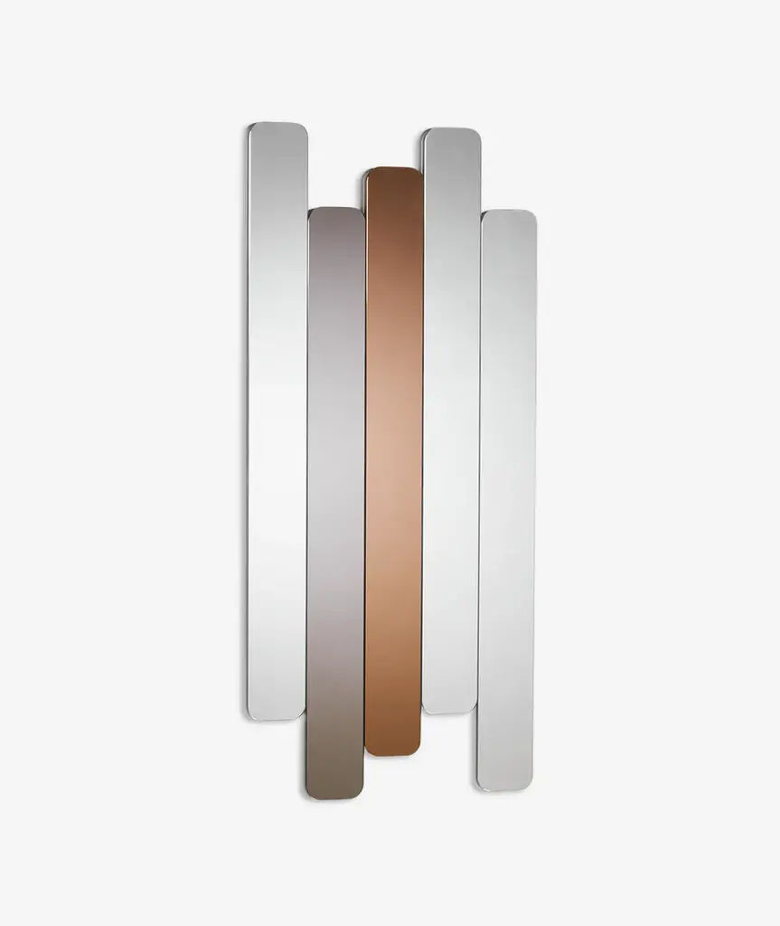 The name ‘Logs’ stems from the designer’s source of inspiration, found in the calmness of the Nordic birch forests. Embodying the repetition of numerous trees, this aesthetically versatile piece echoes the identical shape of the mirrors. Simultaneously static yet softly organic. The individual mirrors can be placed at different heights to obtain a wavy effect, allowing you to construct a personalized expression.