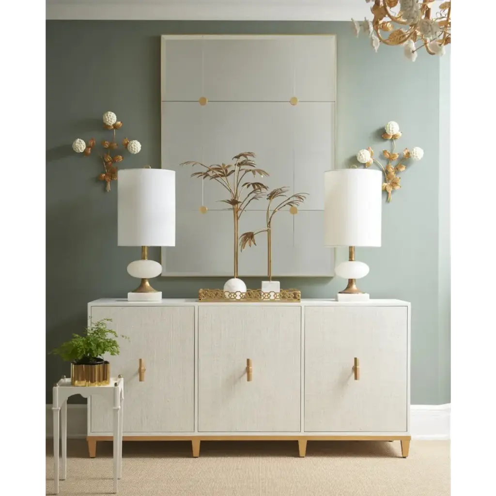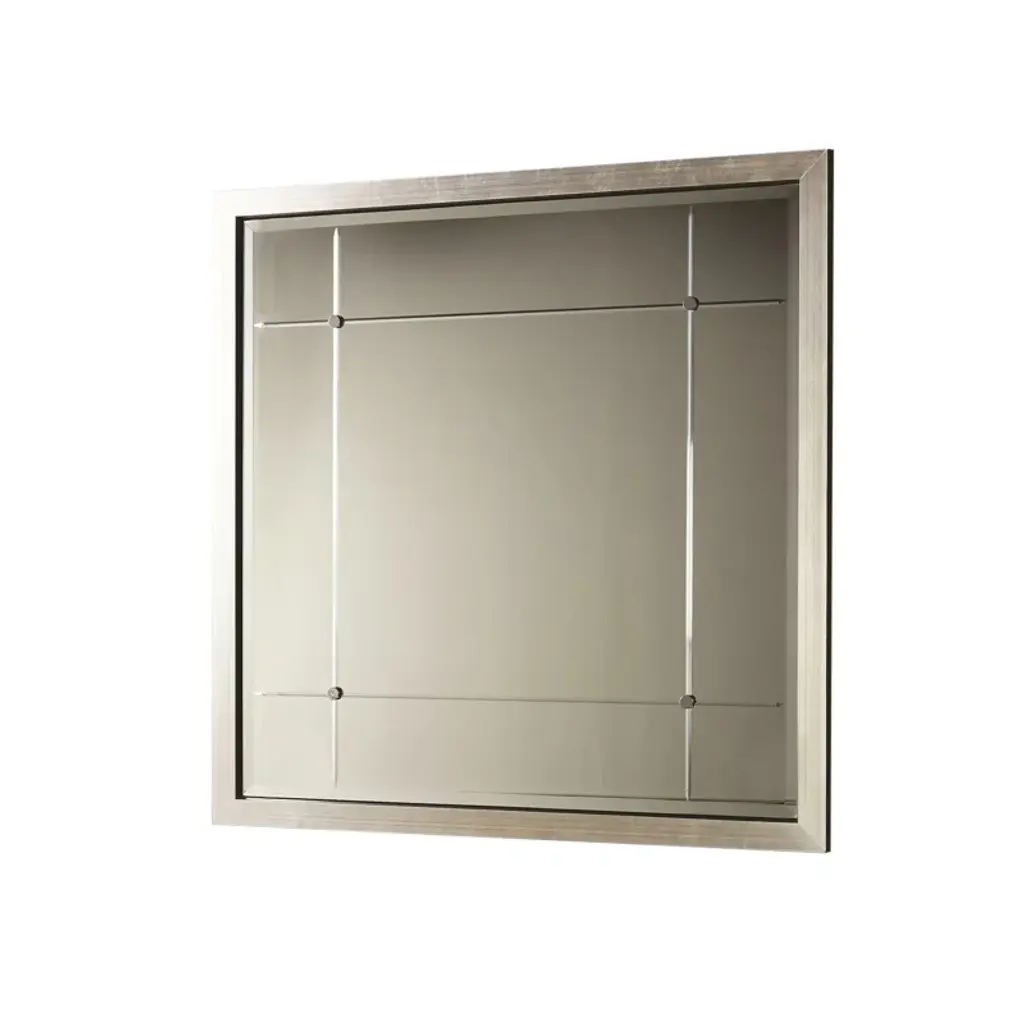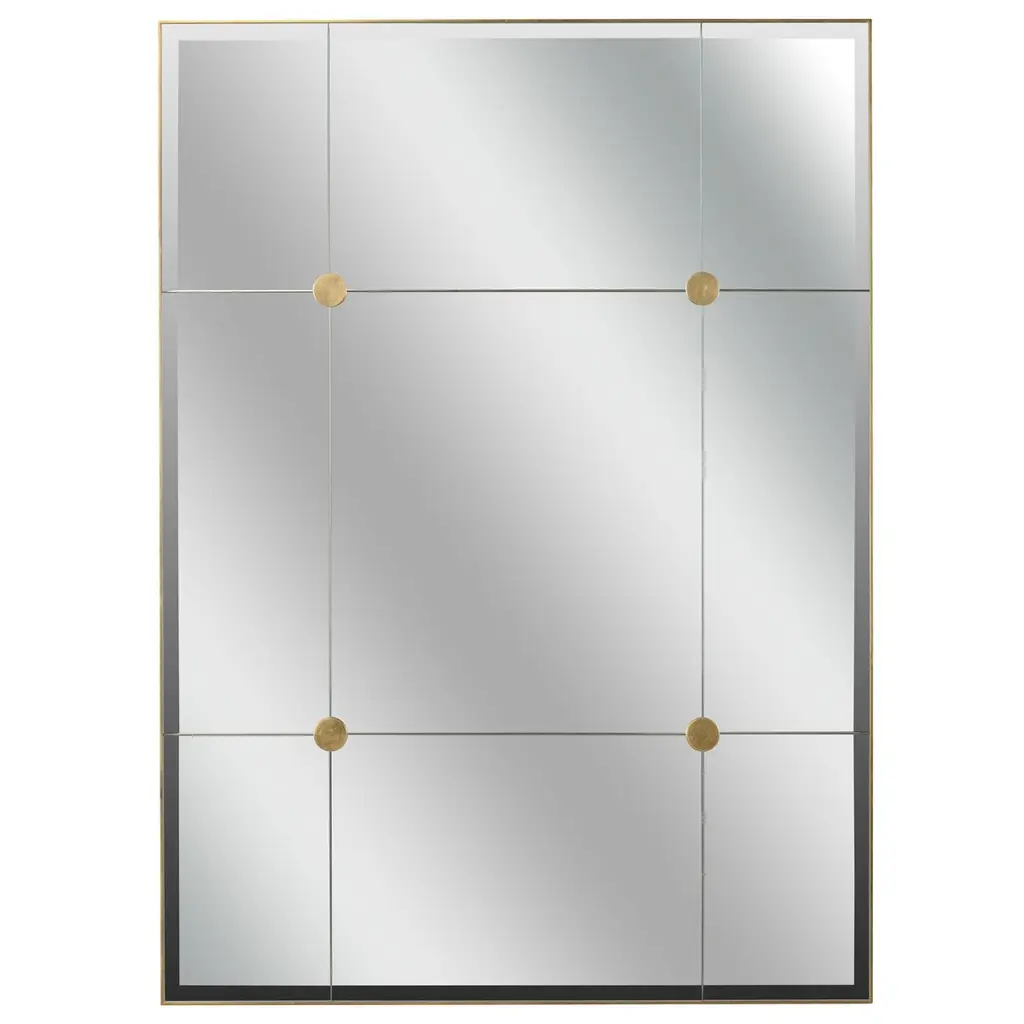 Inspired by antique French mirrors when large mirror panels were unavailable, the large Loire Mirror is an elegant piece decorated with four flat medallions. Available in silver or gold leaf. Designed by Jamie Merida.
