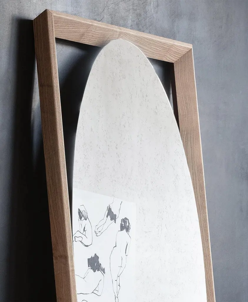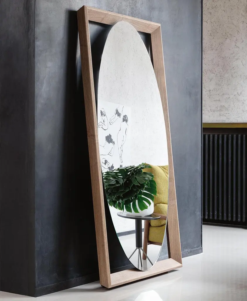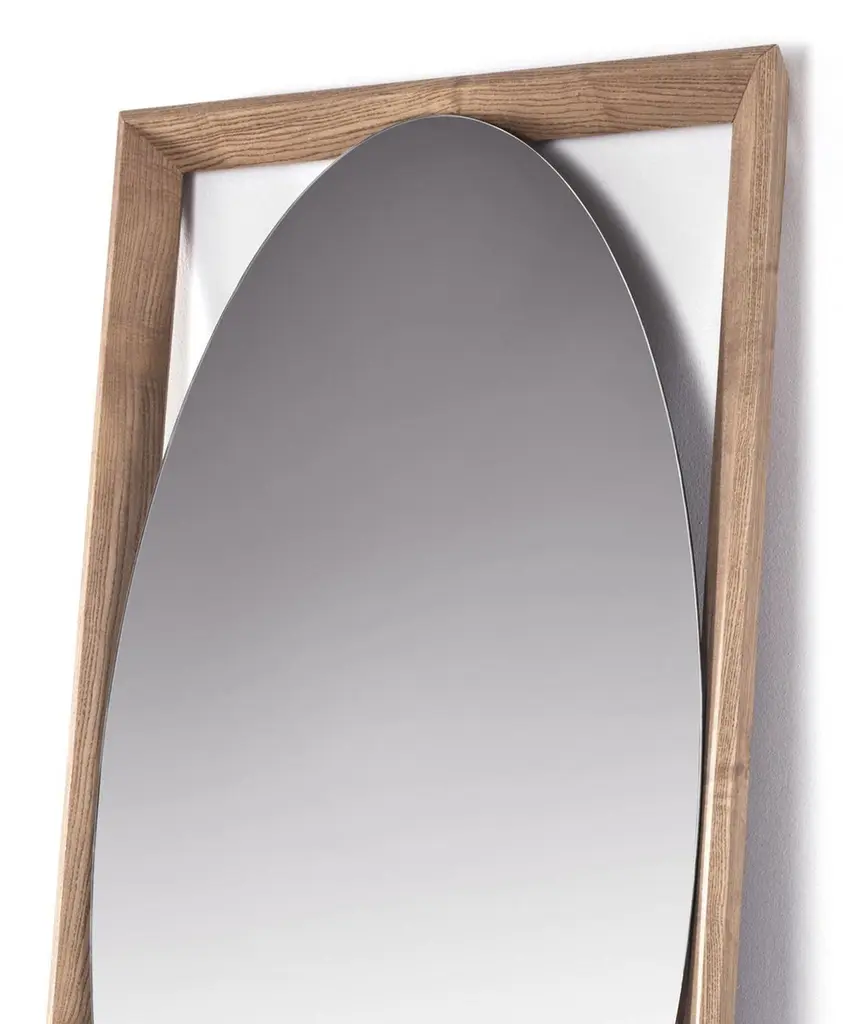 Mirror Loma Gate oval with solid stained ash wood frame and with oval mirror glass.Also available with solid walnut frame on request.
