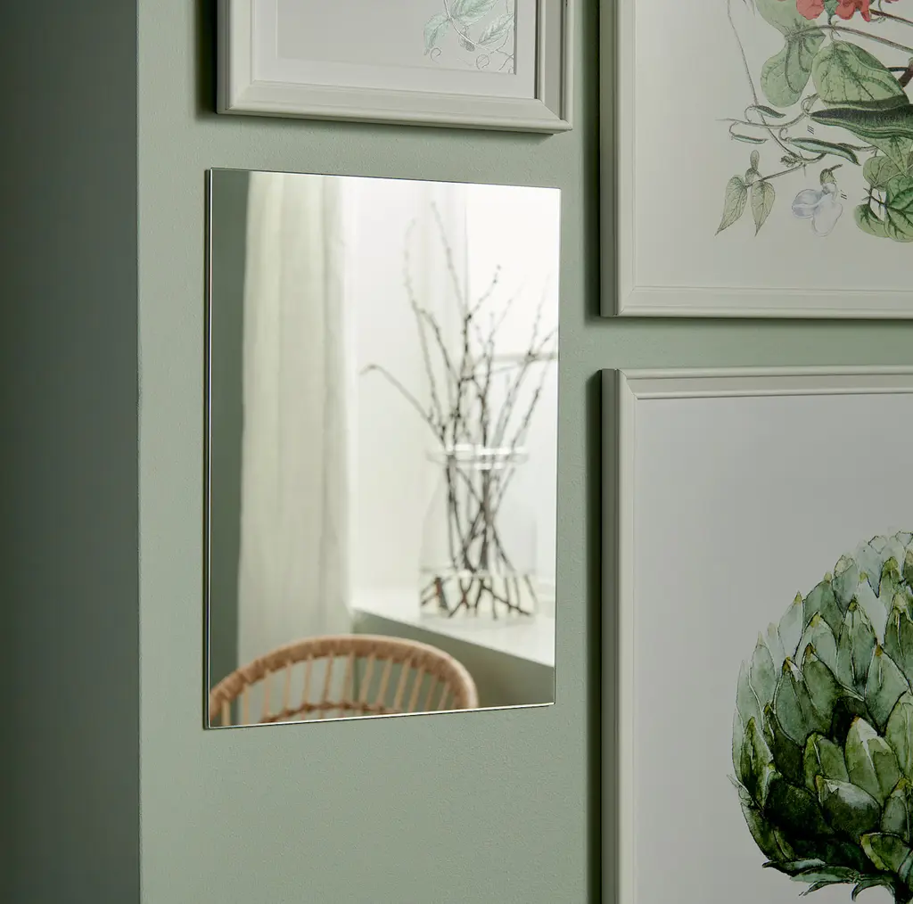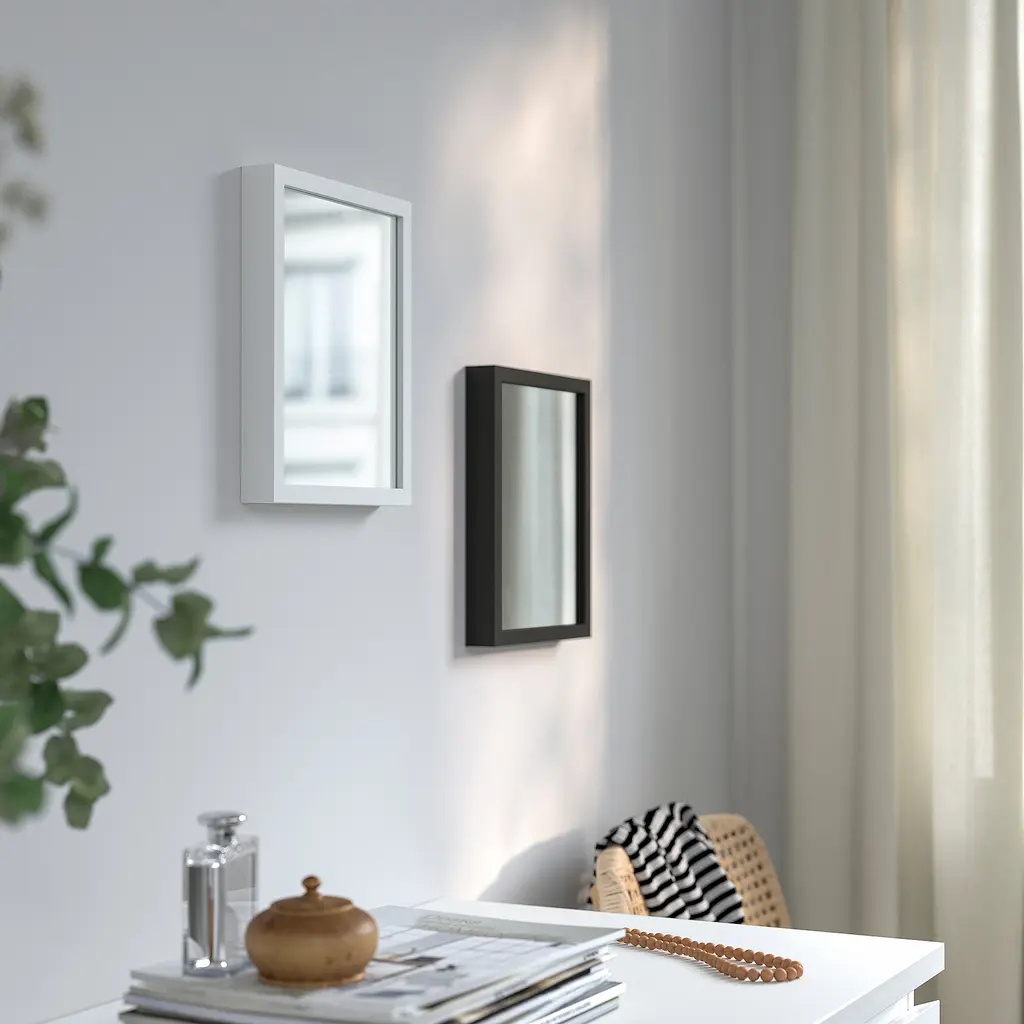 LÖNSÅS Mirror 8x10 ". Fits perfectly in our frames with picture measurement 7 ⅞ x9 ⅞ " , so you can decide the style of the mirror! You can simply stick the mirror to the wall using the double-sided tape. Can be added on to, to give any shape or size. Double-sided tape for wall mounting is included.