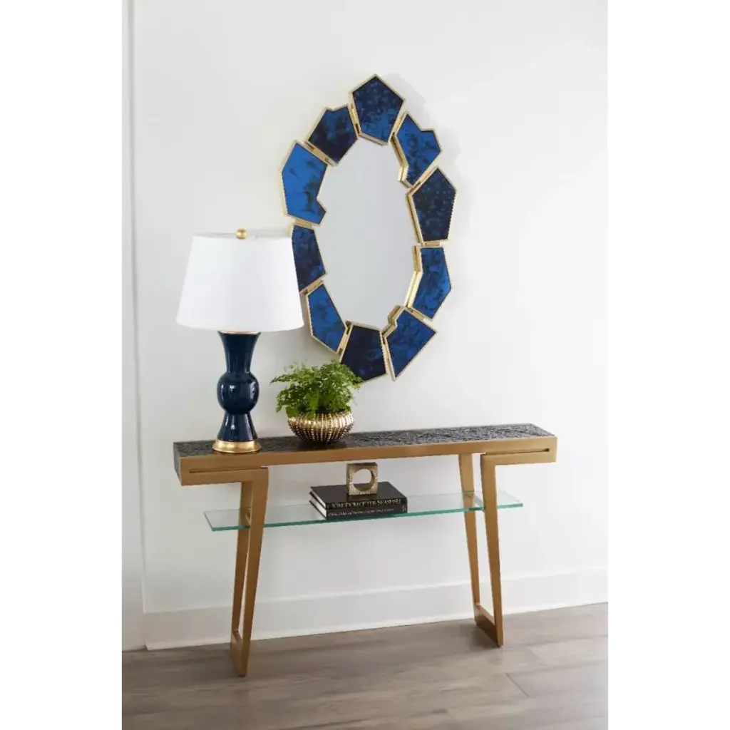 The Lucas Mirror is a striking wall adornment that stands out from the rest. Its unique design features small irregularly-shaped mirrored tiles surrounding a large central clear mirror. A unique treatment has been applied to the surrounding tiles giving them a stunning marbled or tortoiseshell-like pattern that contrasts with the clear central mirror and artistically elevates the piece. Whether placed in an entryway, an elegant powder room, along a hallway, or used as a statement piece in a living room, the Lucas Mirror adds a touch of glamour and intrigue to any space.