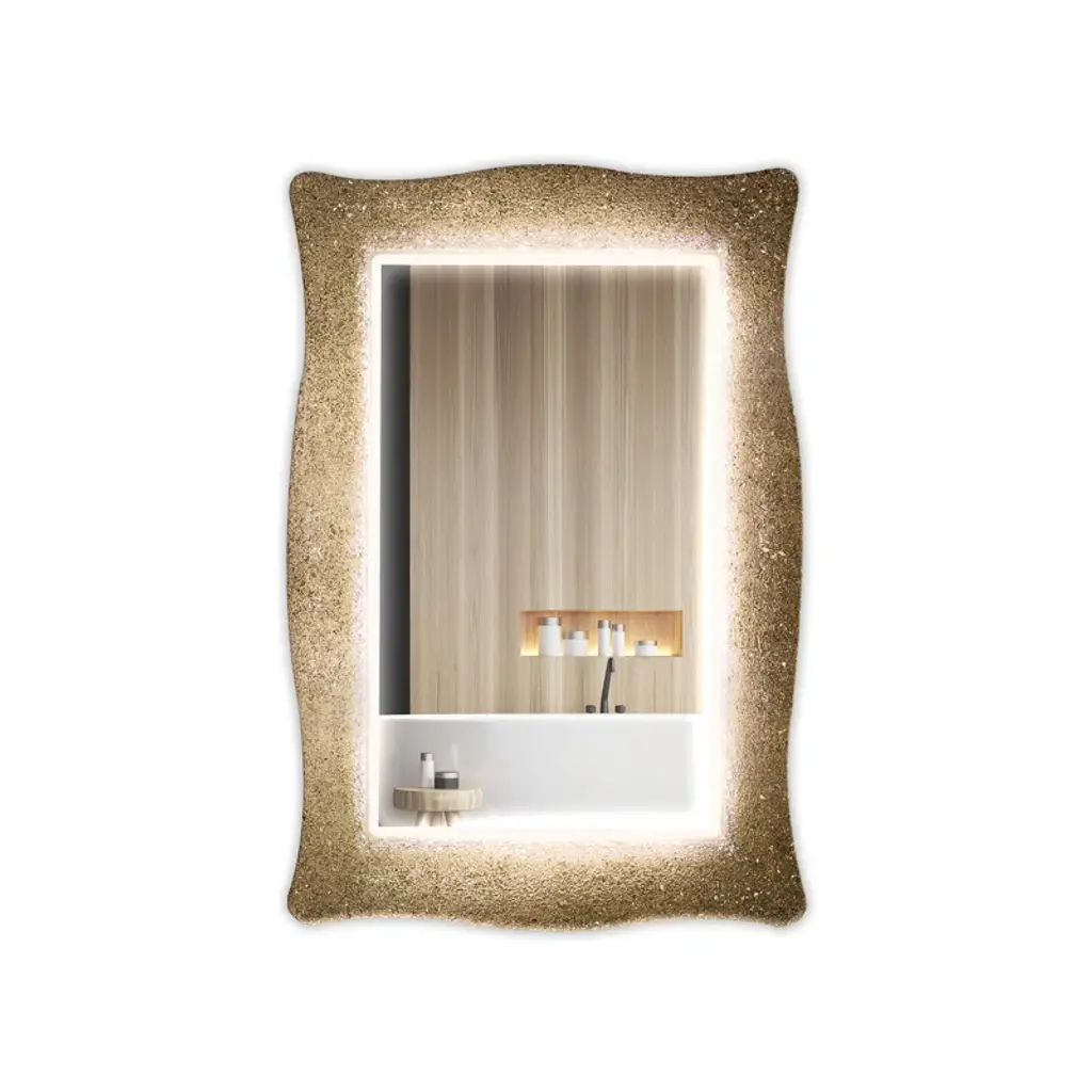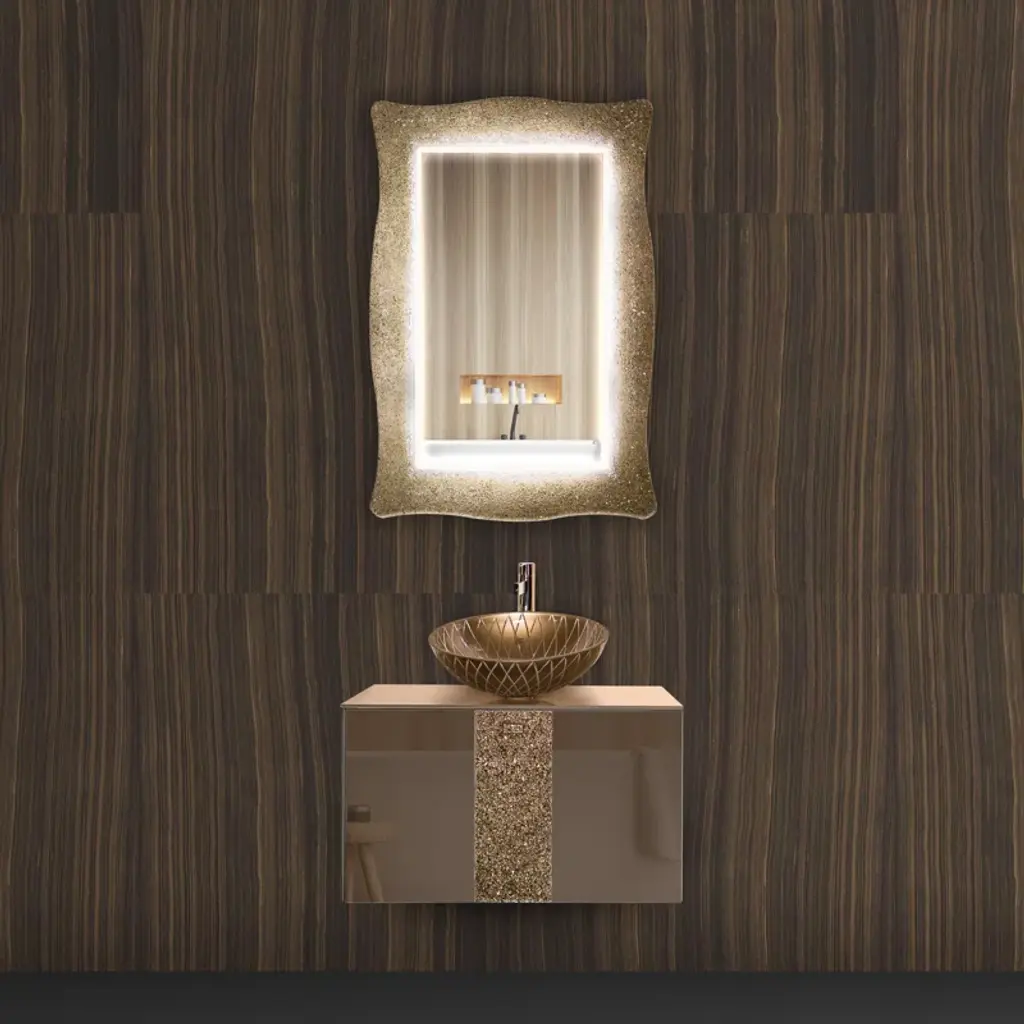 Renowned as a center for glassmaking since the 15th century, Murano was home to the artisans who created Cristallo - the finest glass in the world. Lucent luxury Murano crystal glass sand bathroom vanity mirror is a testament to this artisanship. With its mesmerizing sand finish, Lucent is soothing, calming, and purifying. The Lucent luxury bathroom vanity mirror, with its embellished sparkling marquise-shaped crystals, will captivate the energy in the most sophisticated design styles. • Can be installed horizontally or vertically • Murano crystal glass • LED lighted mirror edge • Luxury transitional design • Handcrafted in Italy