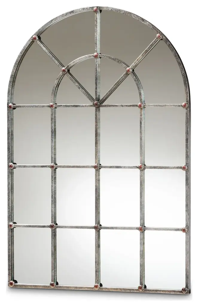 Luciila Vintage Farmhouse Antique Silver Arched Window Accent Wall Mirror