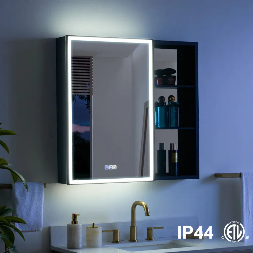 Luminosity, a Contemporary style, back lit LED mirror, dimmable from 3000K-6000K. The colors for the color temperatures are Warm White, Day Light White and Cool White. This frameless mirror is 3600 Lumens, and features a touch screen power button, with seedy, rectangle-shaped glass. This mirror adds a breath-taking brilliance that will compliment your bathroom/home decor, and is designed using an Environmental Silver Plated mirror. UL Listed and Dry/Damp listed, recommended for an indoor setting. Mirror comes as a plug-in but is capable to be hardwired to the wall (recommended for an electrician to install the mirror to be hardwired). Dimmable button automatically turns off after 30 minutes of use. This mirror has approximately 5000 lifetime hours and hangs vertically.