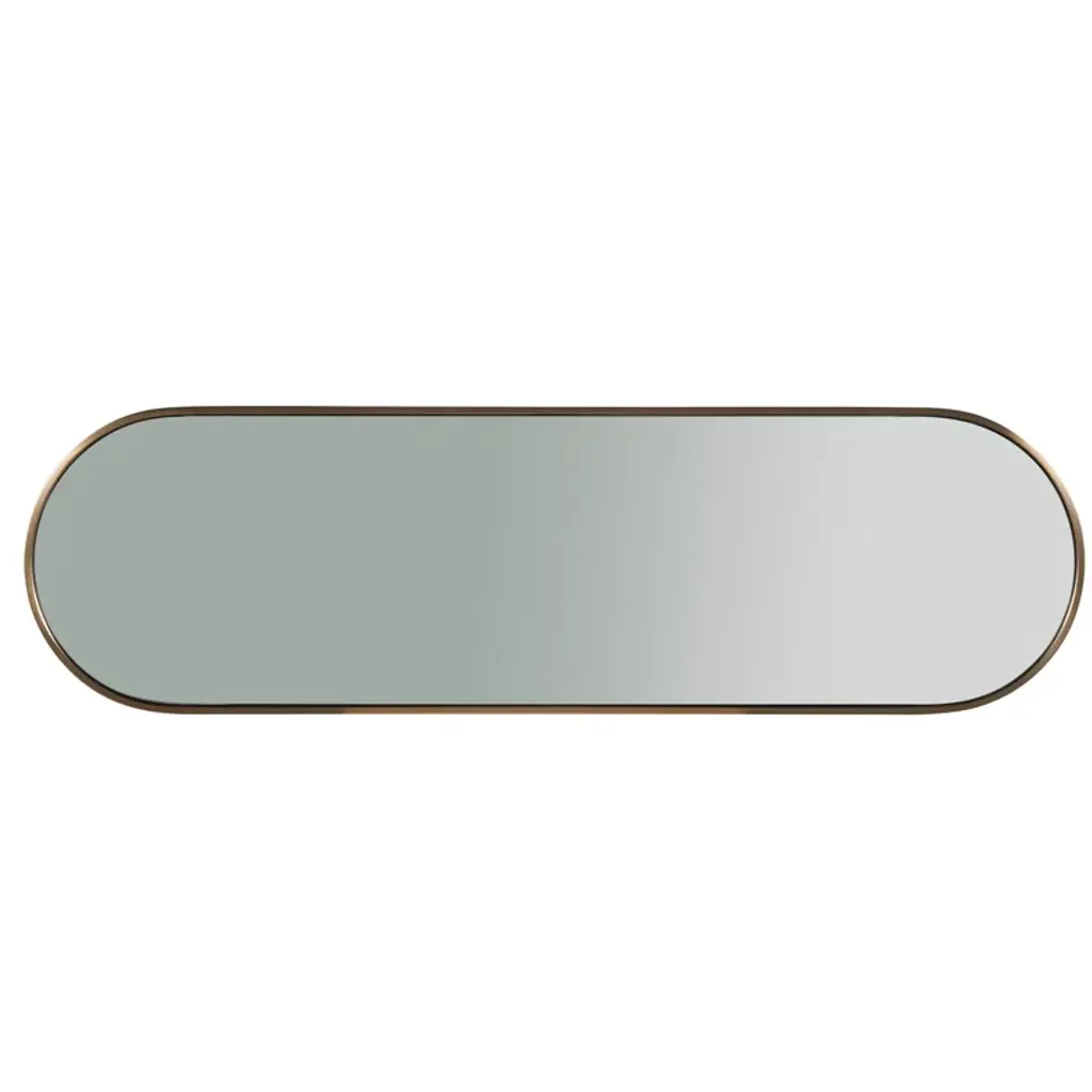 This breathtaking framed accent mirror is sure to be the center of attention of any room. With is ornate and intricate crown arch top and carvings, this mirror is an art piece itself. Features a gorgeous golden finish.