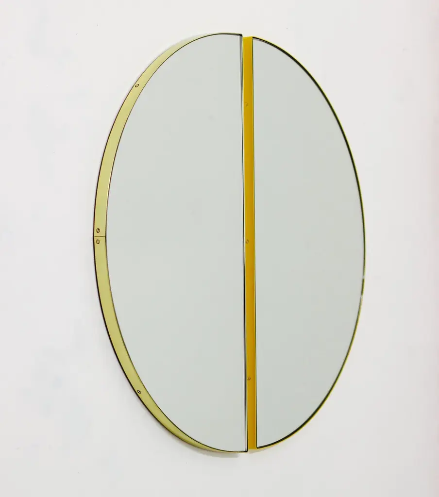 Original and minimalist half-moon mirror with a modern aluminium powder coated frame. Quality design that ensures the mirror sits perfectly parallel to the wall. Designed and made in London, UK. Fitted with an ingenious French cleat (split batten) system so that the mirror may hang flush with the wall in four possible alternative directions: with the moon facing up, down, left or right (the mirror cannot be hung diagonally). This mirror is fully customisable. Shipped safely and fully insured worldwide.ORDERS OF MULTIPLE MIRRORS OF THE SAME TYPE: Please contact us to receive a Packing and Shipping quote when ordering multiple mirrors of the same type. An order for multiple mirrors of the same type may not be accepted without extra packing and shipping fees. Thank you.
