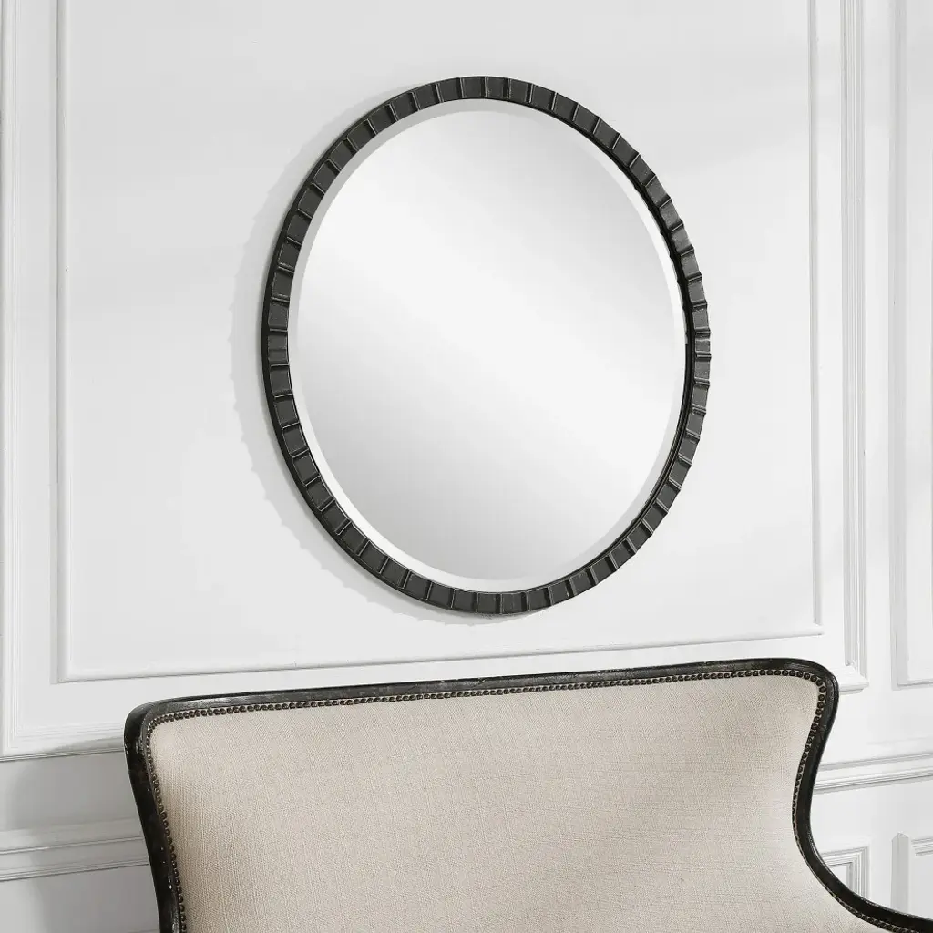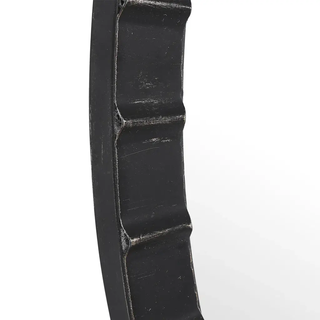 Luxe Modern Black Ridged Frame Wall Mirror 34" Round Industrial Iron Ribbed