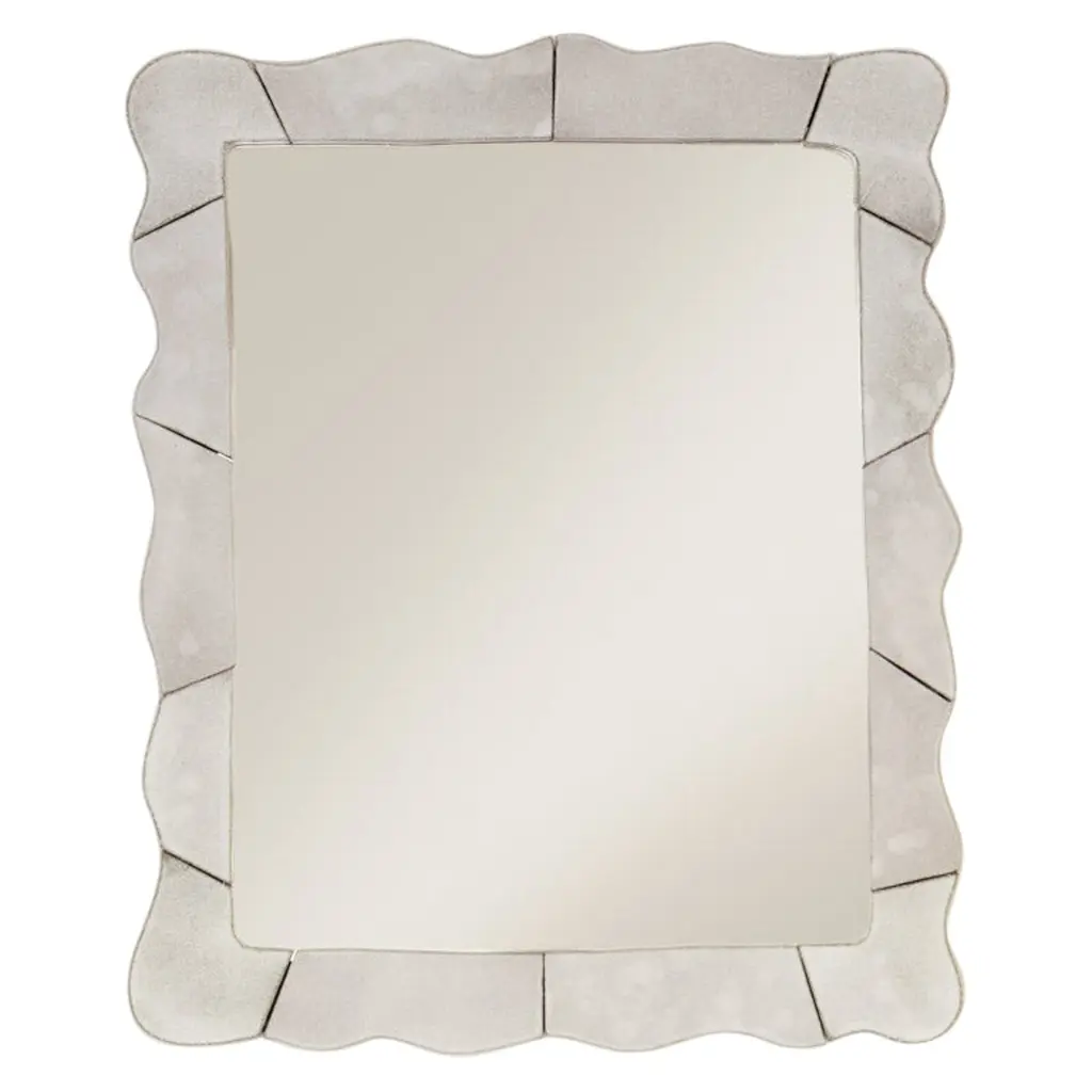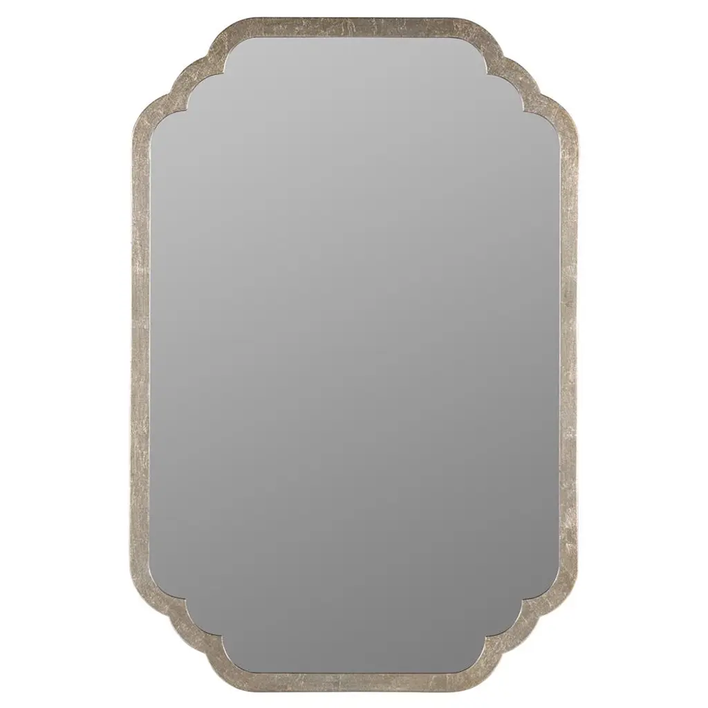 Add a modern twist to any bathroom or hallway with this interesting silver mirror. Cut out shapes add a contemporary spin to the classic frame.