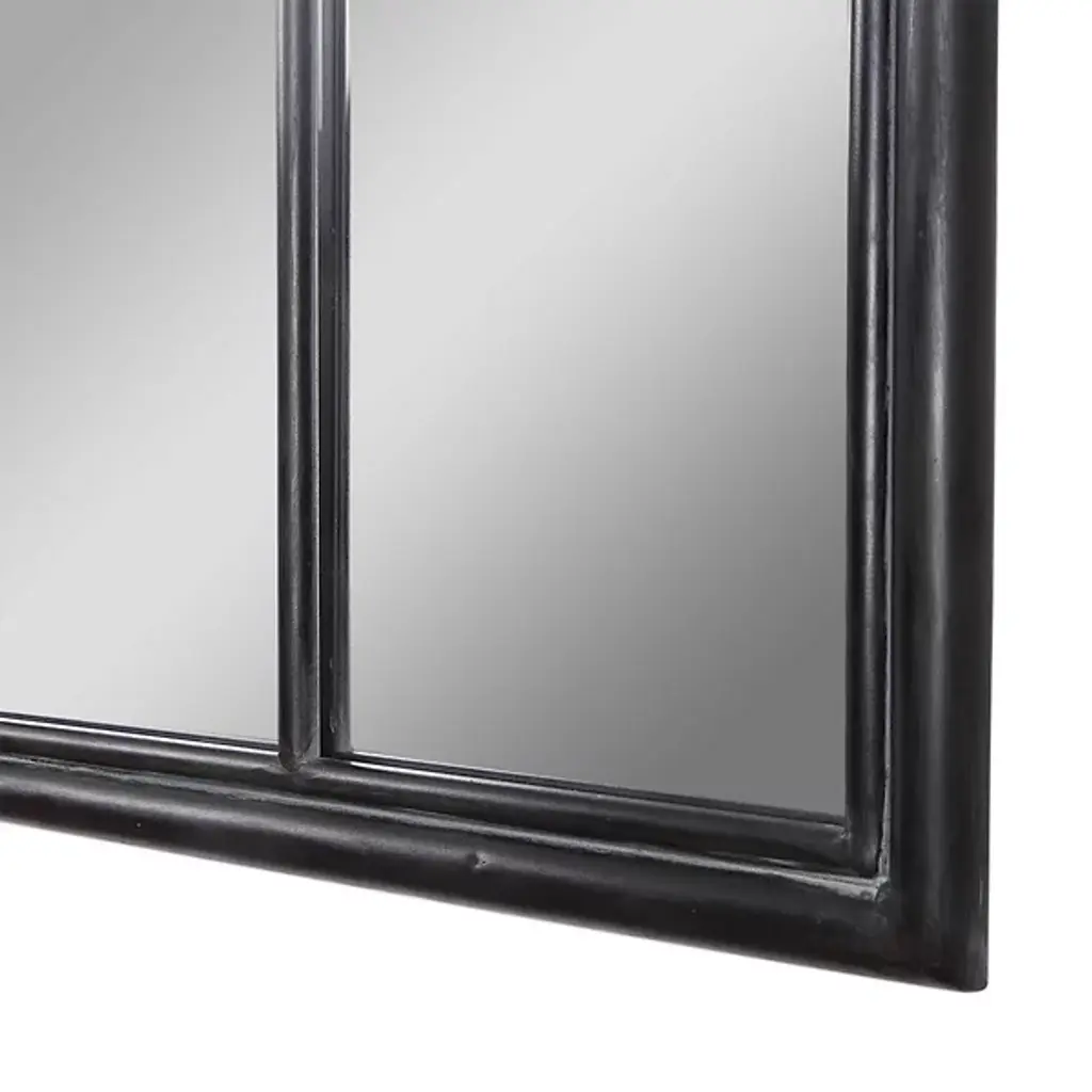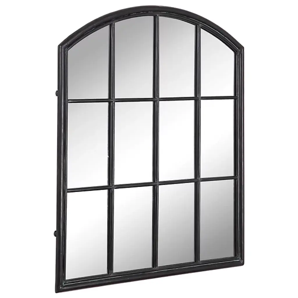 The Lyda Arch Window Mirror from Uttermost brings architectural charm to contemporary spaces. Inspired by classic window designs, its arch-top frame is made of handcrafted iron finished in a rustic aged black with light gray distressing for added character. This versatile mirror blends playful style with modern appeal, making it a memorable accent for any room that reflects the inside rather than presenting the outside.
