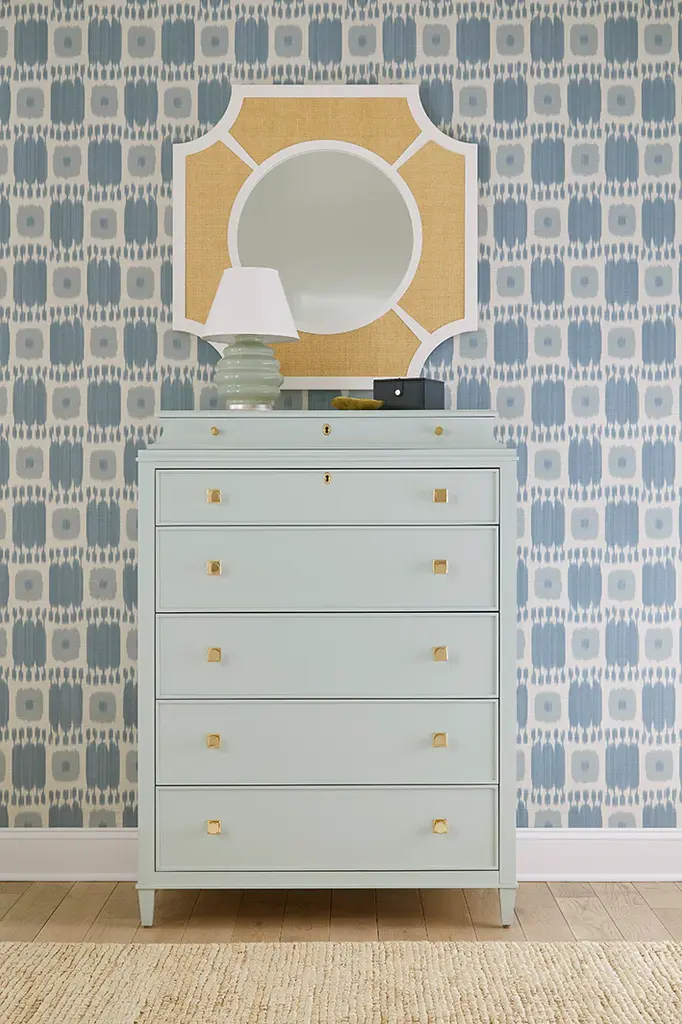 Dimensions: 36W x 36H Never under estimate a great mirror. The Lyford Mirror is no exception. Unique in shape, perfect in size, and tailored in our favorite raffias for a year-round seaside vibe. Custom color available. Made in America.