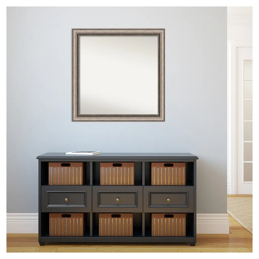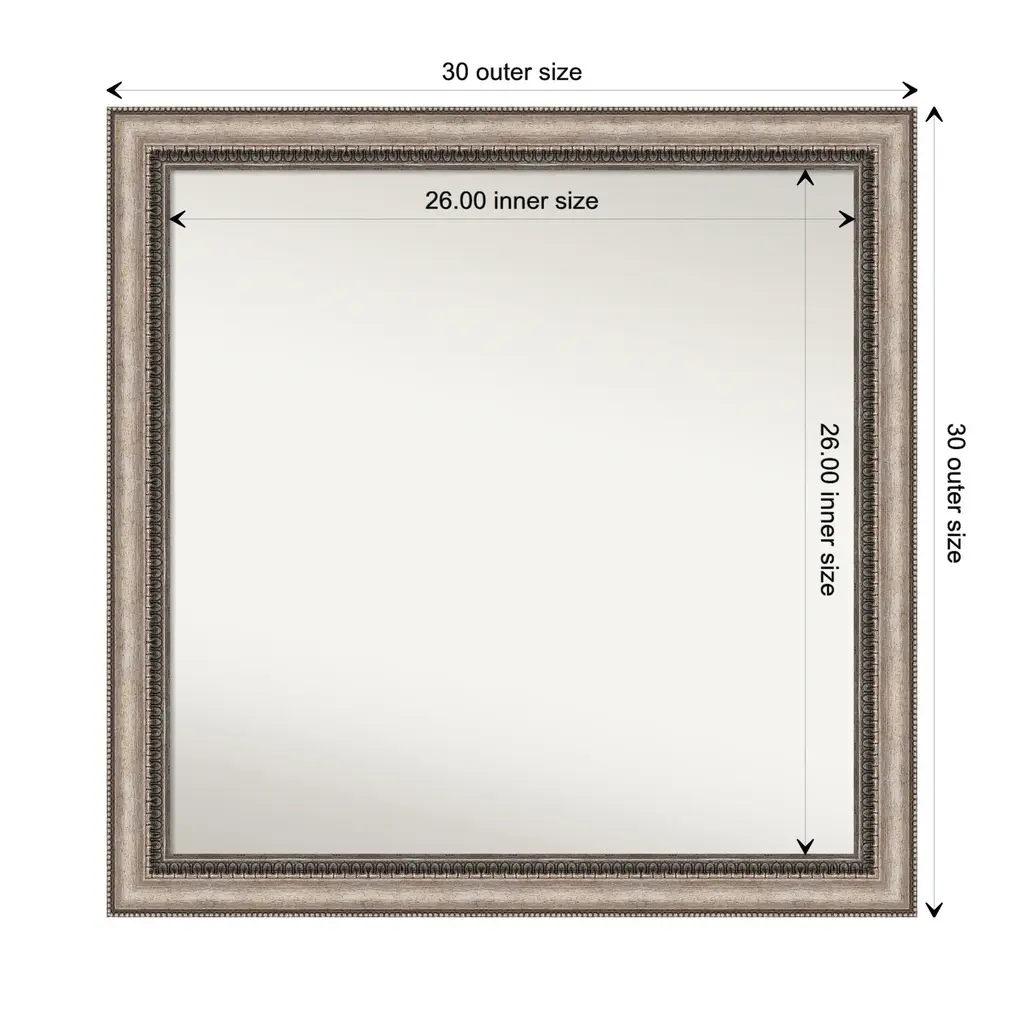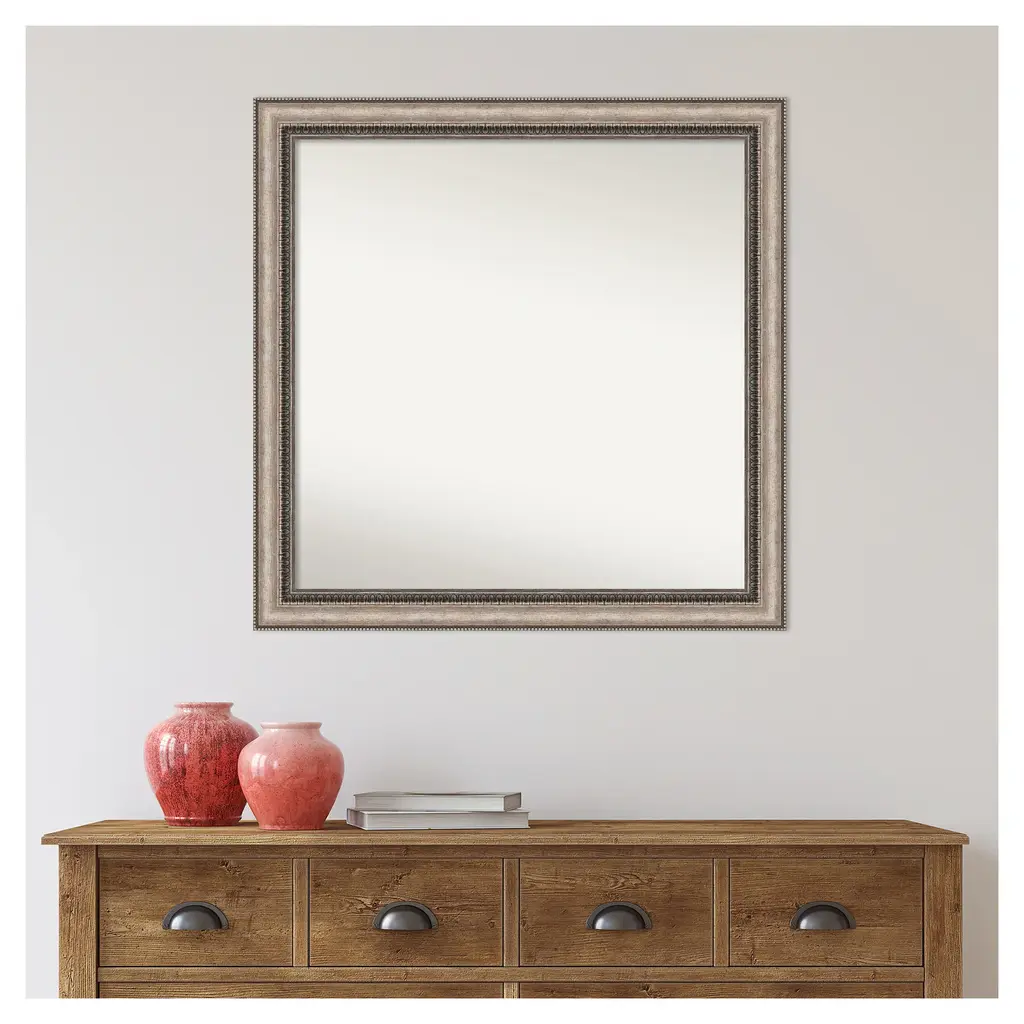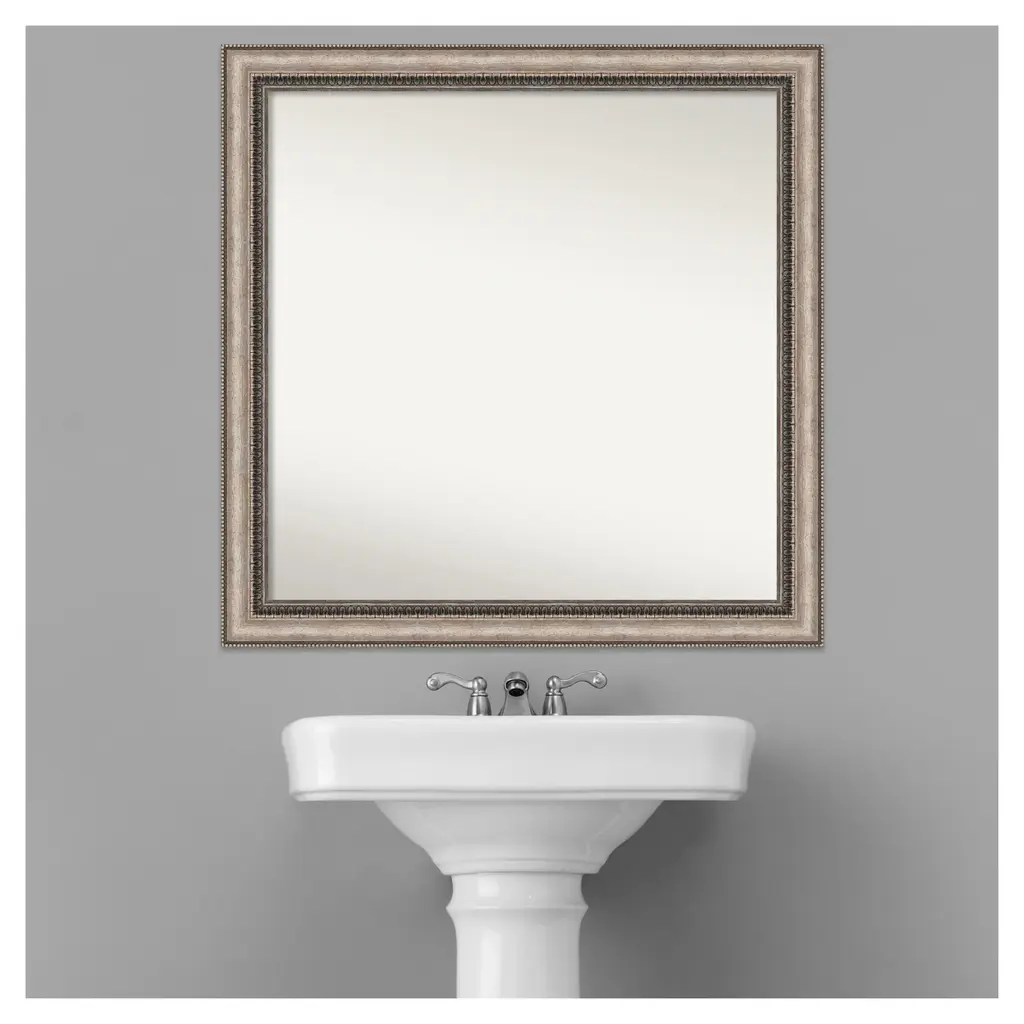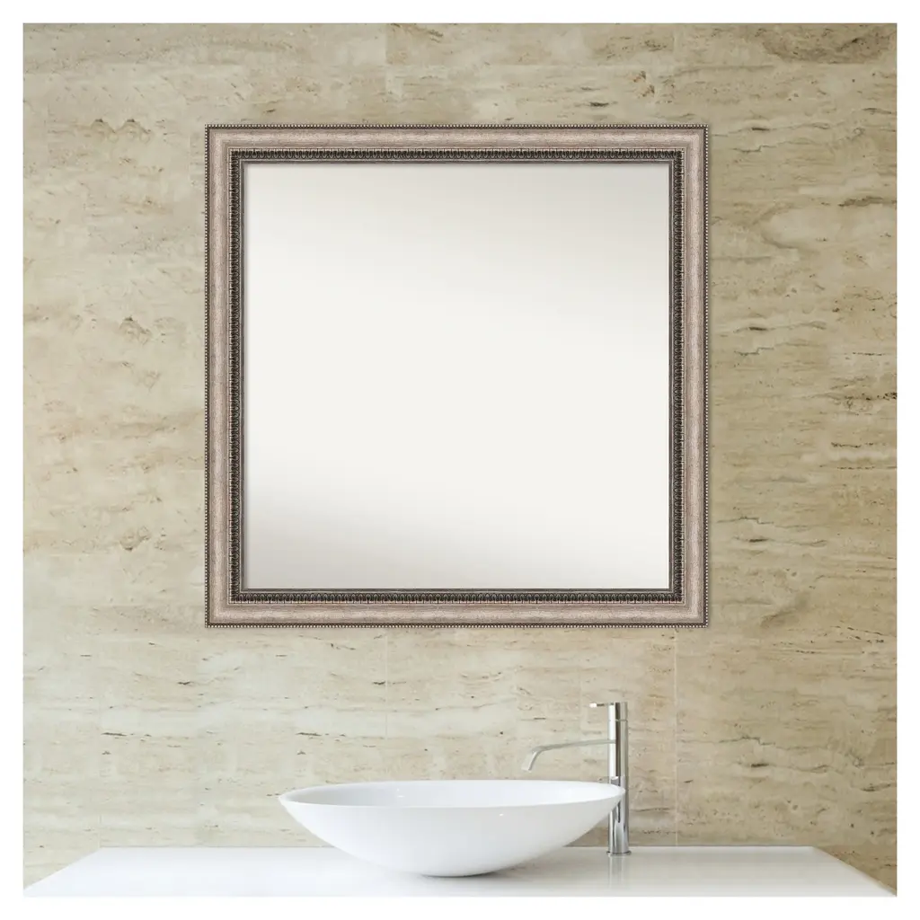 Give your bathroom the finishing touch with this Non-Beveled Wall Mirror framed with the Lyla Ornate Silver frame. Individually made using traditional custom framing techniques, it has the quality you would expect from your local frame shop. It holds its value with premium finishing that can be appreciated up close.Features:MIRROR DETAILS: This mirror features premium glass for a clear, undistorted image and has a non-beveled surface to maximize the viewing area.FRAME DETAILS: The Lyla Ornate Silver Frame is a frame with a curved surface, beading on the outer edge, ornate design on the inner edge, and a warm, bronze-tone brushstroke finish. The frame is 2.25 in. wide and stands 1 in. off the wall.PROTECTIVE BACKING: This wall mirror is finished with a solid surface backing to ensure stability and prevent moisture and dust buildup.HASSLE-FREE HANGING: All mirrors have durable hanging hardware attached to the back to hang vertically or horizontally, along with hanging hooks and nails.ASSEMBLED IN THE USA: Each piece is assembled to order in Madison, WI USA.FOR HOME OR COMMERCIAL USE: Because of our attention to detail and focus on artistry, architects, interior designers, and homeowners alike choose this mirror to create beautiful living spaces.