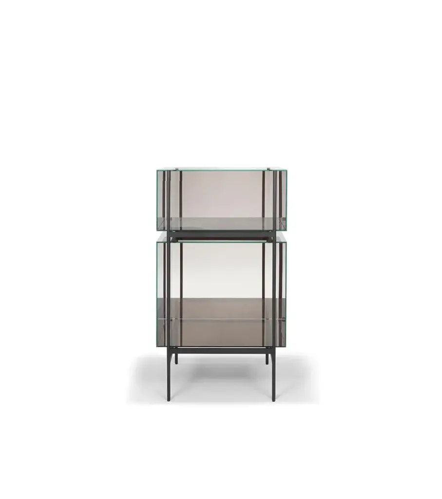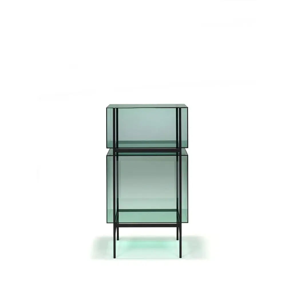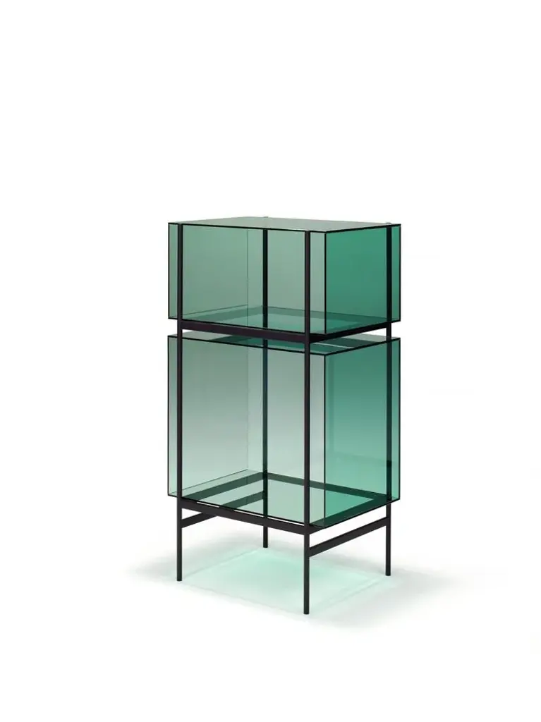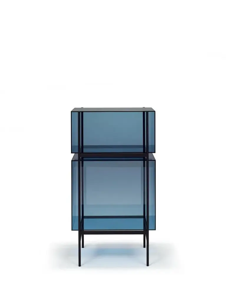 Lyn small mirror black cabinet by Pulpo Dimensions: D 60 x W 45 x H 110 cm Materials: glass; powder coated steel Also available in different colours. Studio Visser & Meijwaard describe their conception of lyn as a “graphic interplay between glass and the metal frameworks”. The doorless and diverse series of cabinets and high boards are equivalent to the designers’ ambition to rethink established forms, like they did in their past as fashion designers. The reduction to the absolute essential form opens a free interplay of material and colour. Depending on the lighting conditions, the viewer’s perspective and arrangement it casts the utmost of diverse highlights. Each piece is created from coloured glass. Pulpo is a design editor for high-end products in the home sector. Design is our passion. Art is our engine. We are fascinated by the craft of the ceramic and glassblowing workshops and are guided by the rough aesthetics of these unique pieces. Pulpo’s philosophy goes back to the idea of the “carte blanche”.