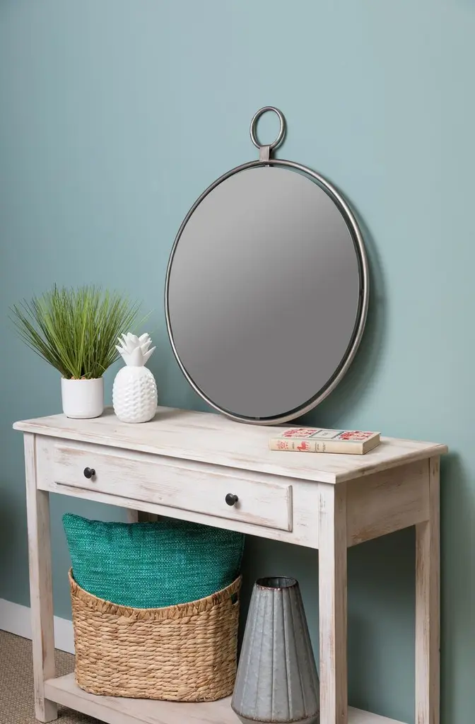 Designed with a decorative ring detail and gleaming silver finish, this wall mirror's elegant simplicity allows it to work in any room of your home.