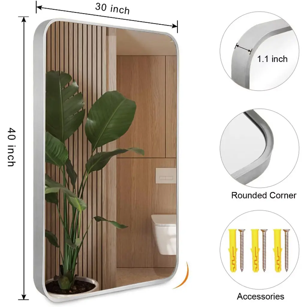 Lyngins 30x40 Inch Wall Mount Vanity Mirror,modern Rectangular Bathroom Mirror With Metal Frame For Bathroom,bedroom,silver