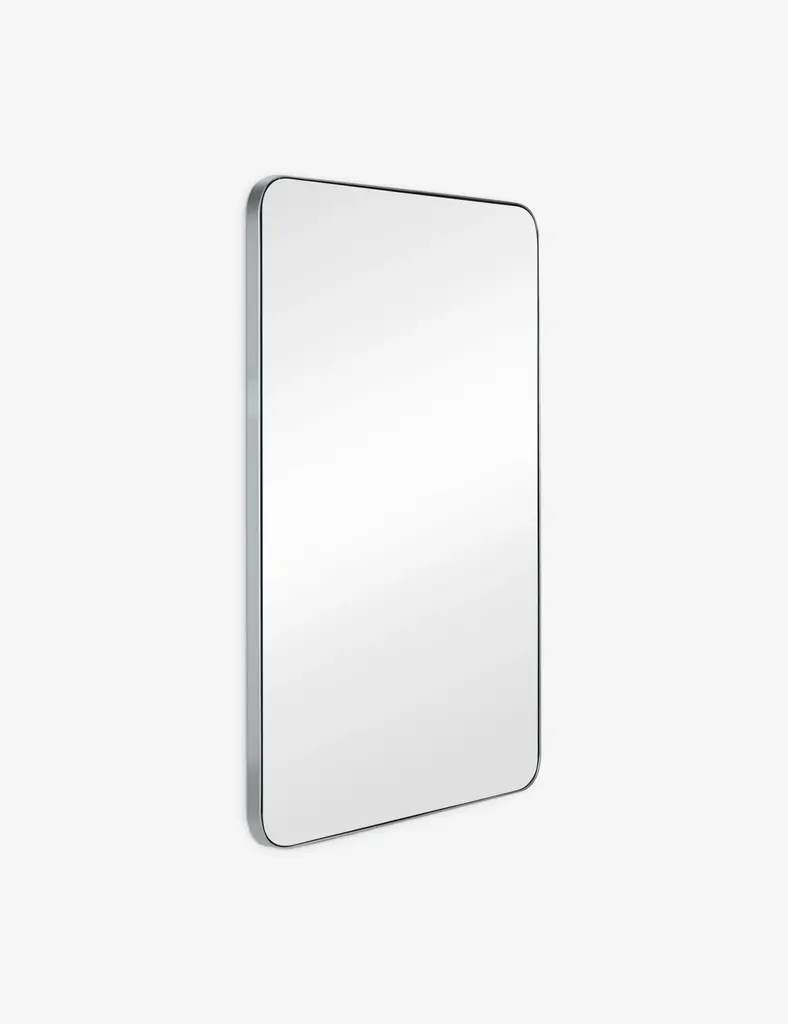 Rounded corners soften the look of this chic, minimalist wall mirror. Perfect for contemporary spaces, this mirror is perfect above a bathroom vanity or dresser for a modern touch.