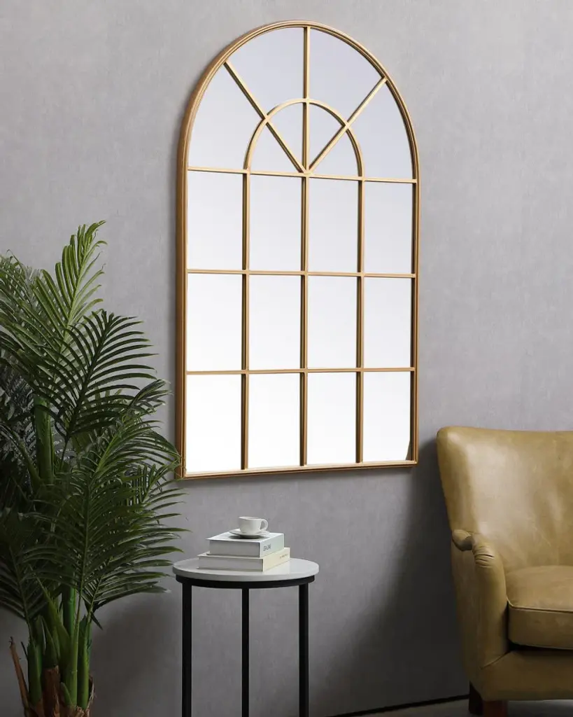 Macey Metal Windowpane Mirror, 36"x53", Brass