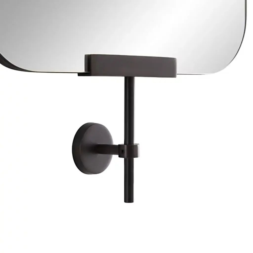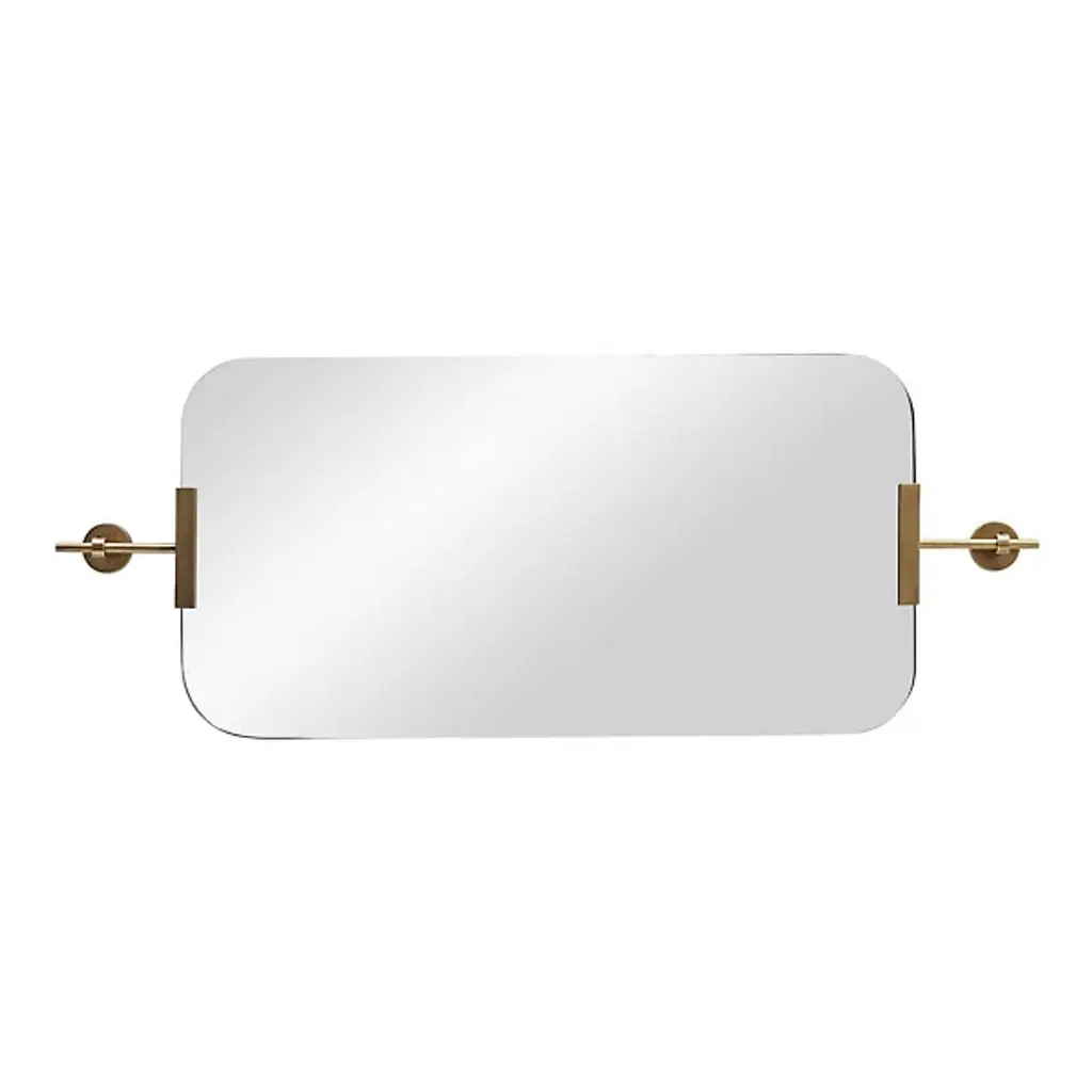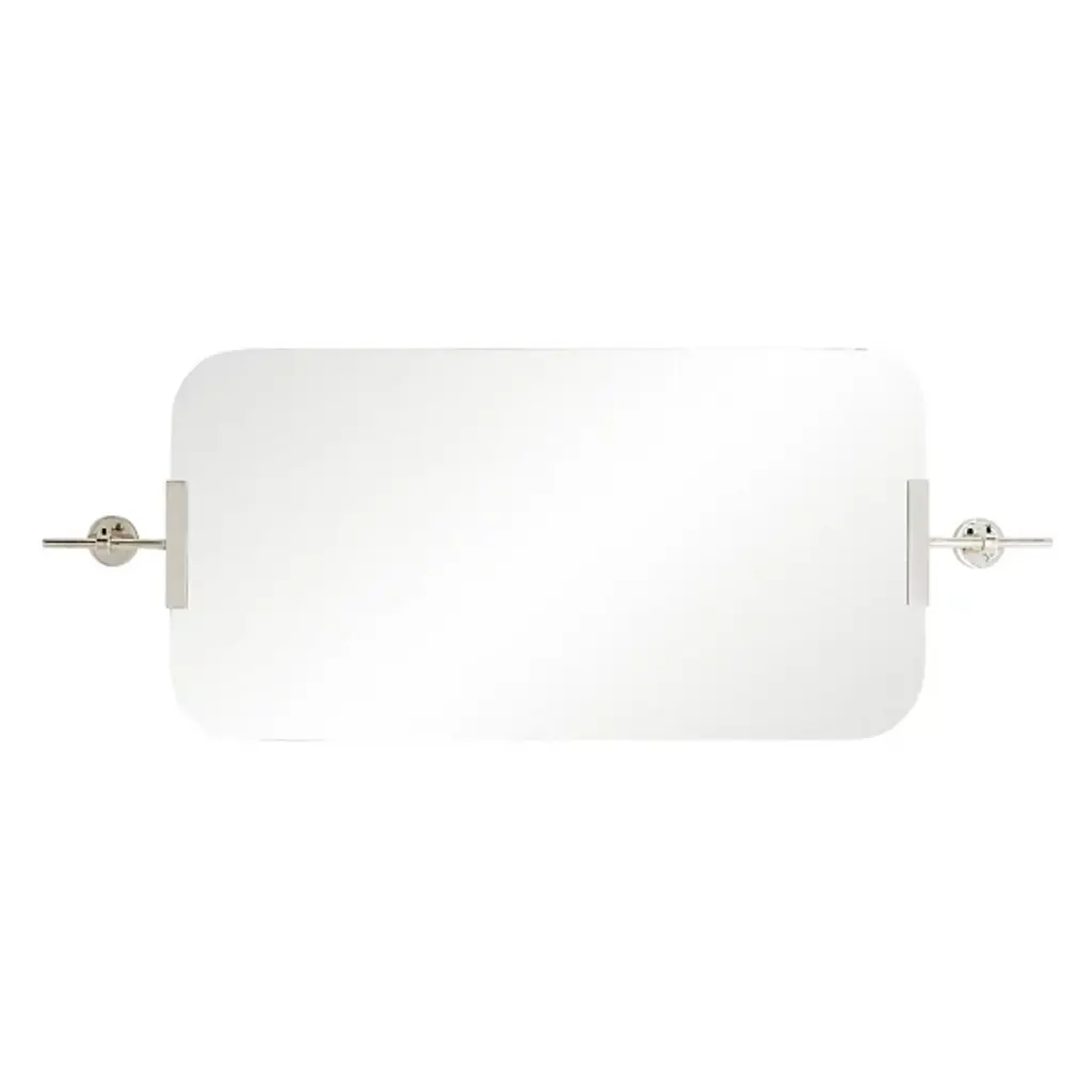 Elegantly displayed on the wall, the Madden Mirror by Arteriors brings a modern touch of charm to interiors. This rectangular mirror rounds gently at each corner for a softer aesthetic while its hovers daintily ahead of the wall. Two metal brackets hold the mirror in place, extending forward from matching wall mounts with angled clamps at each end of the piece. This mirror can be mounted to the wall either vertically or horizontally and seamlessly blends into any modern environment.